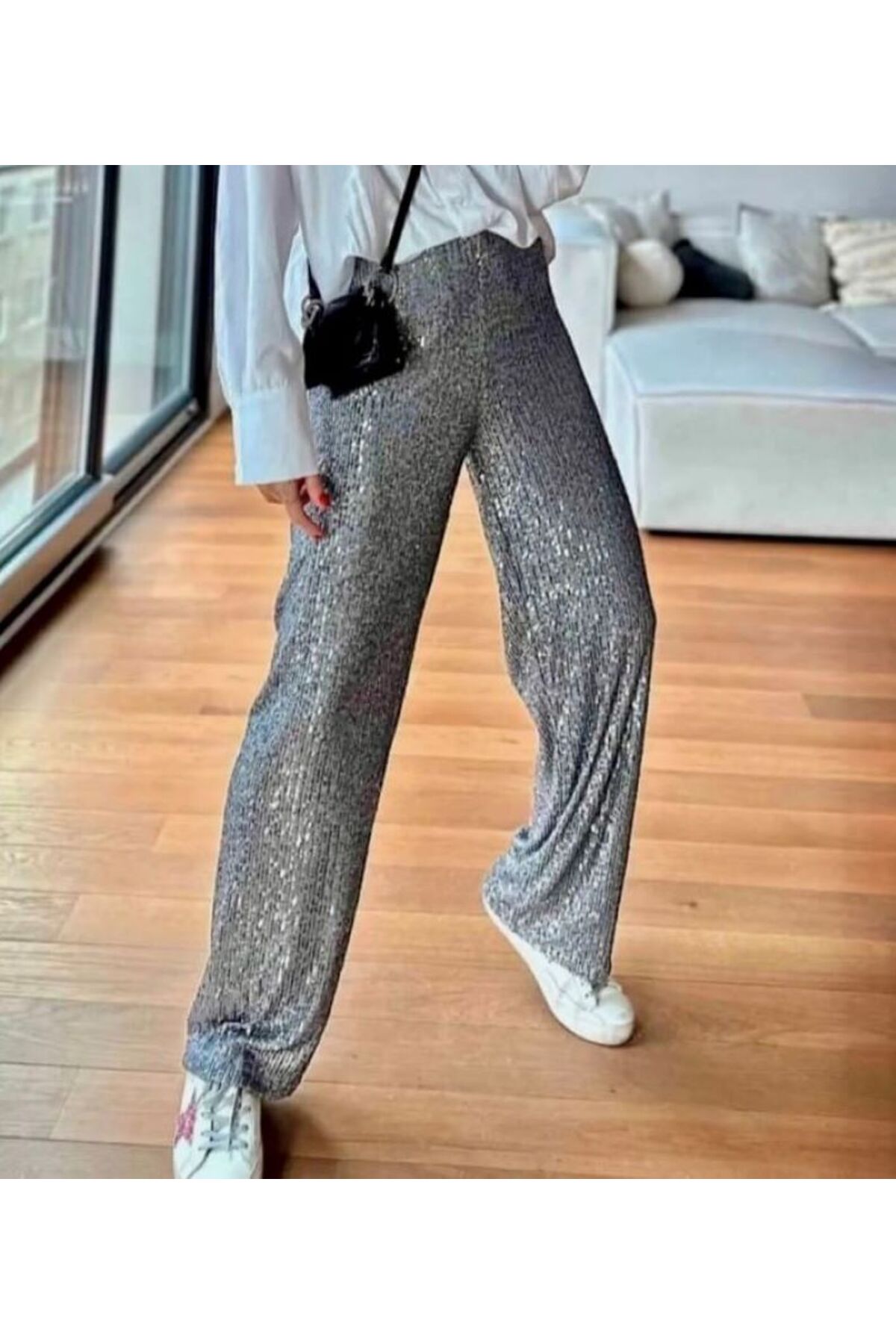 SEQUIN PANTS COLOR: THERE ARE SILVER AND BLACK COLORS. THEY HAVE NO POCKETS. THE INSIDE IS LINED. PRODUCT LENGTH: 104 CM SIZE: S-M-L.