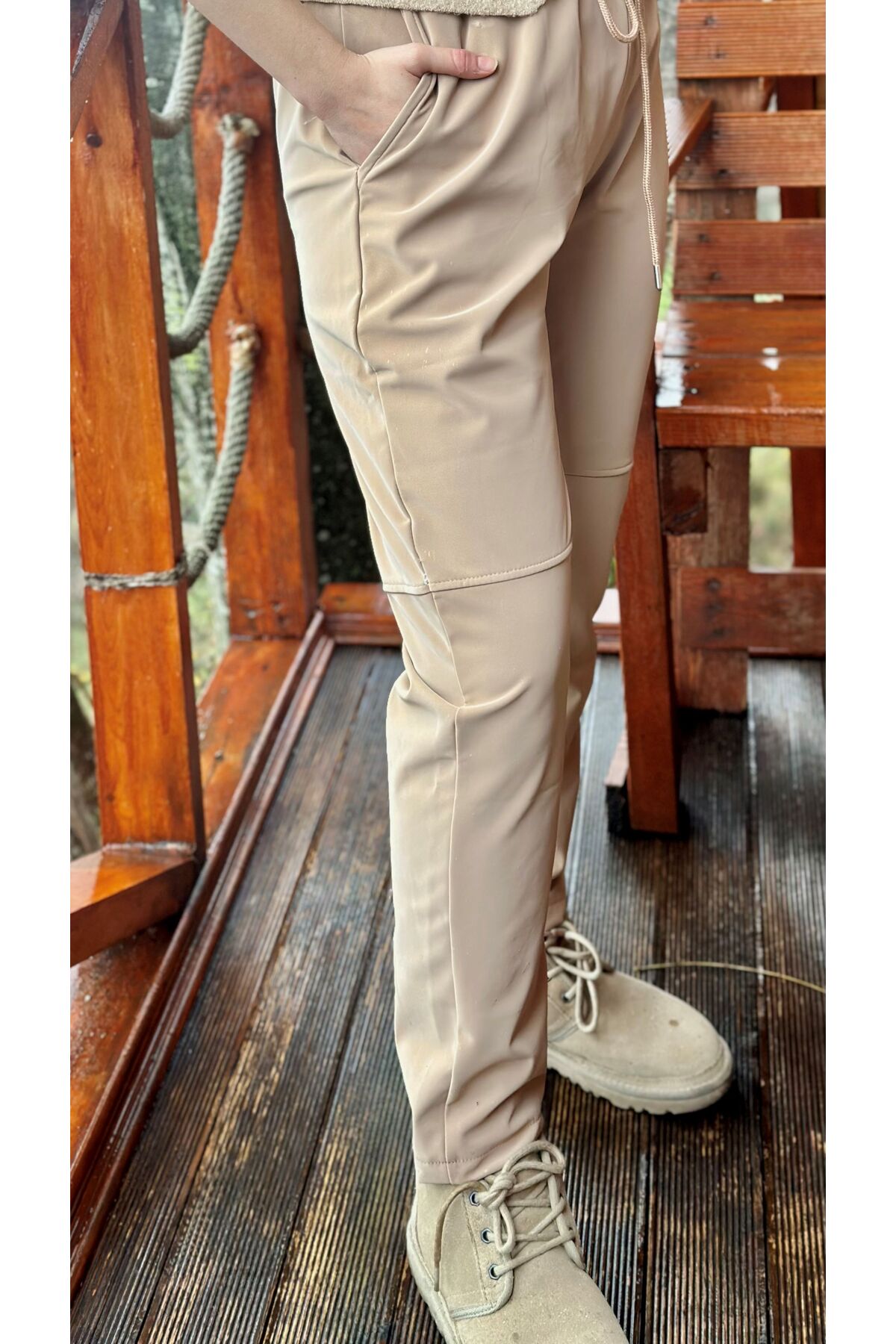 TROUSERS WITH POCKET DETAIL COLOR: BEIGE SIZE: (S-M-L). PRODUCT SIZE:; PANTS LENGTH: 87 CM, WITH ELASTIC WAIST.