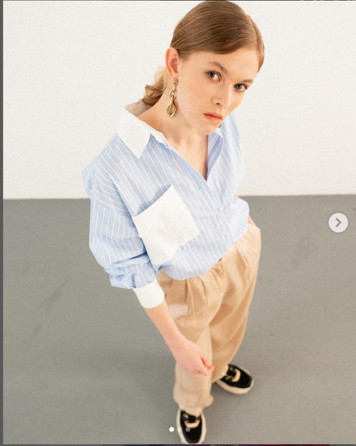 COLOR: WHITE AND THIN PINK LINES ON BLUE