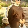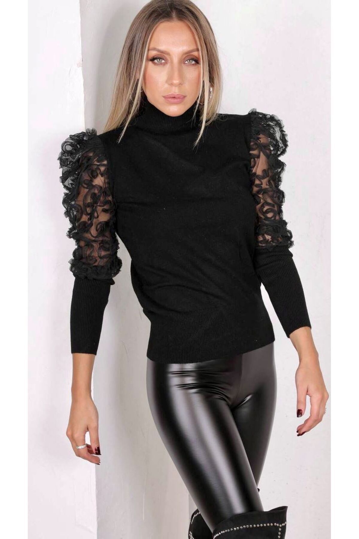 BLOUSE WITH TULLE DETAILED SLEEVES. SIZE: STANDARD COLOR: CAMEL AND BLACK. IT HAS NO POCKETS. THE TOP COLLAR KNIT BLOUSE HAS TULLU EMBROIDERY ON THE SLEEVES. PRODUCT LENGTH: 56 CM
