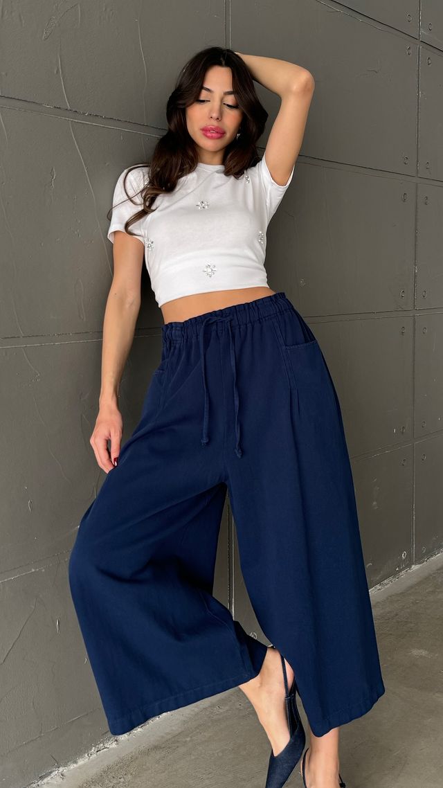 IT HAS AN ELASTY WAIST, LONG LENGTH AND POCKETS