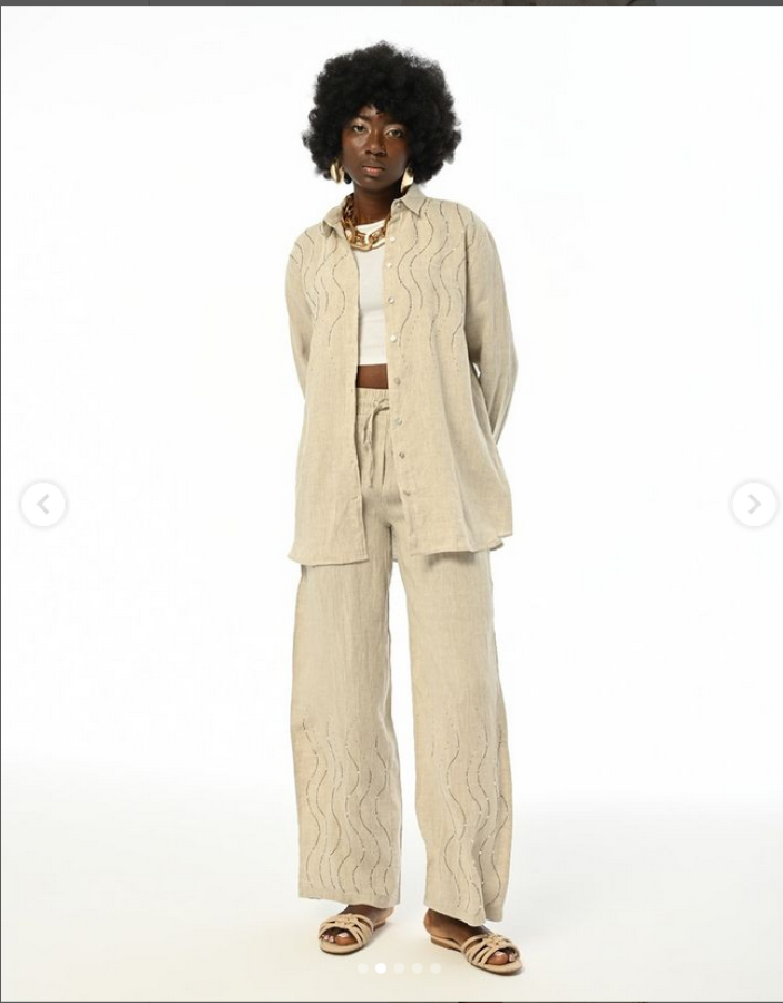 SHIRT AND TROUSERS ARE EMBROIDERED.
