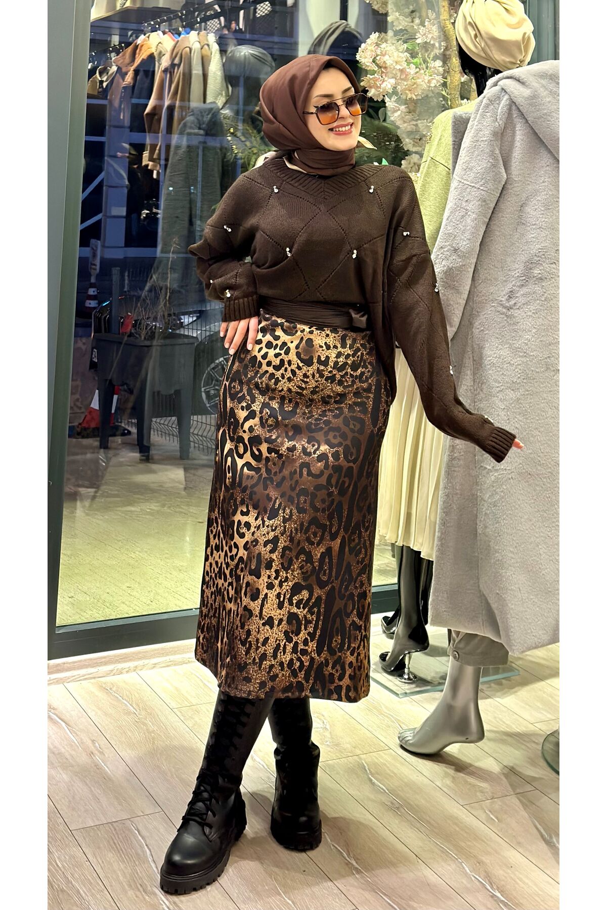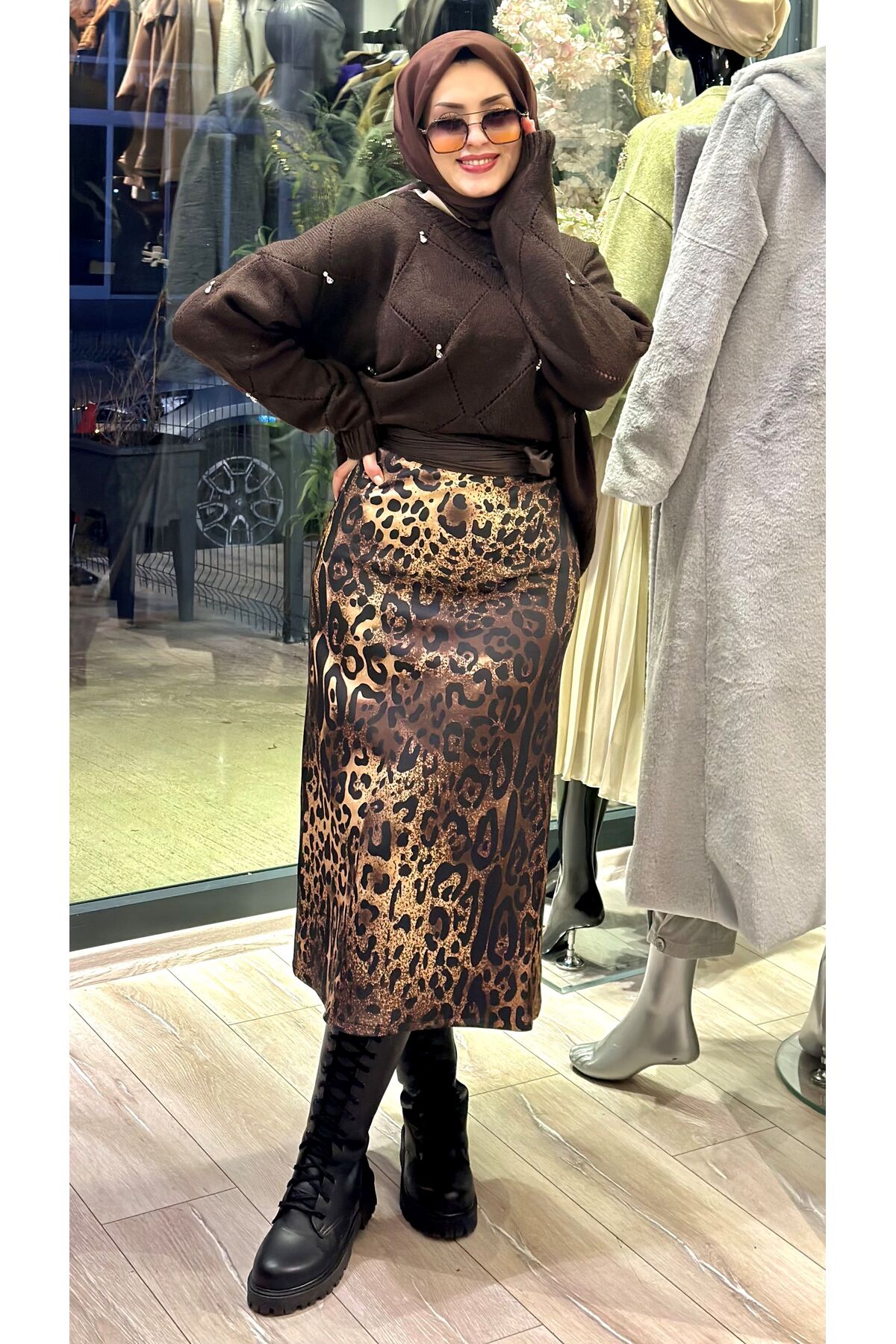 THE DESIGN IS A LEOPRA SKIRT SIZE (36-38-40-42). PRODUCT LENGTH: SIZE 36 78 CM 38 SIZE 87 CM 40-42 SIZE 88 CM COLOR: BROWN IT IS A QUALITY FABRIC, IT IS LEOPARD PATTERNED AND IT HAS NO POCKETS. IT HAS ELASTIC WAIST.