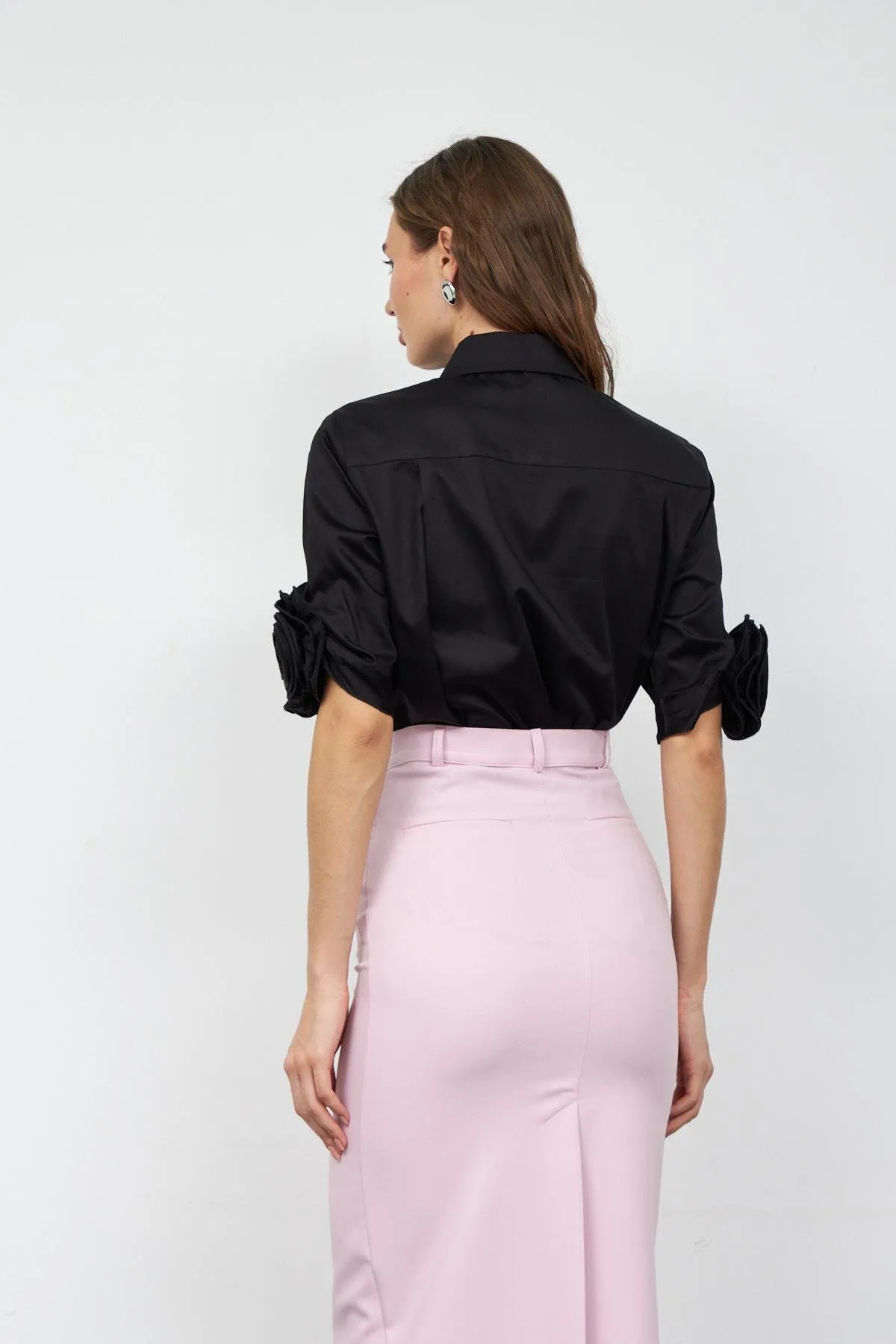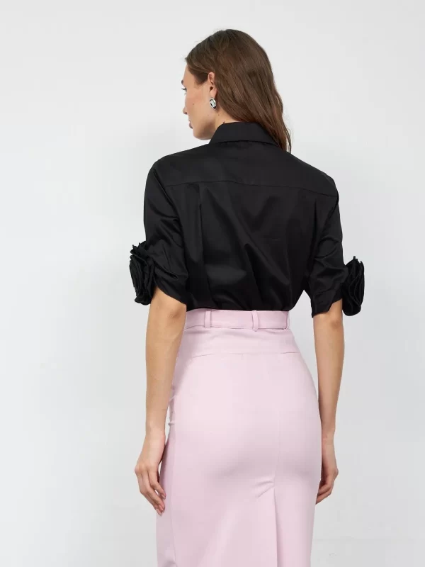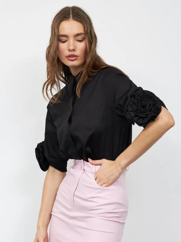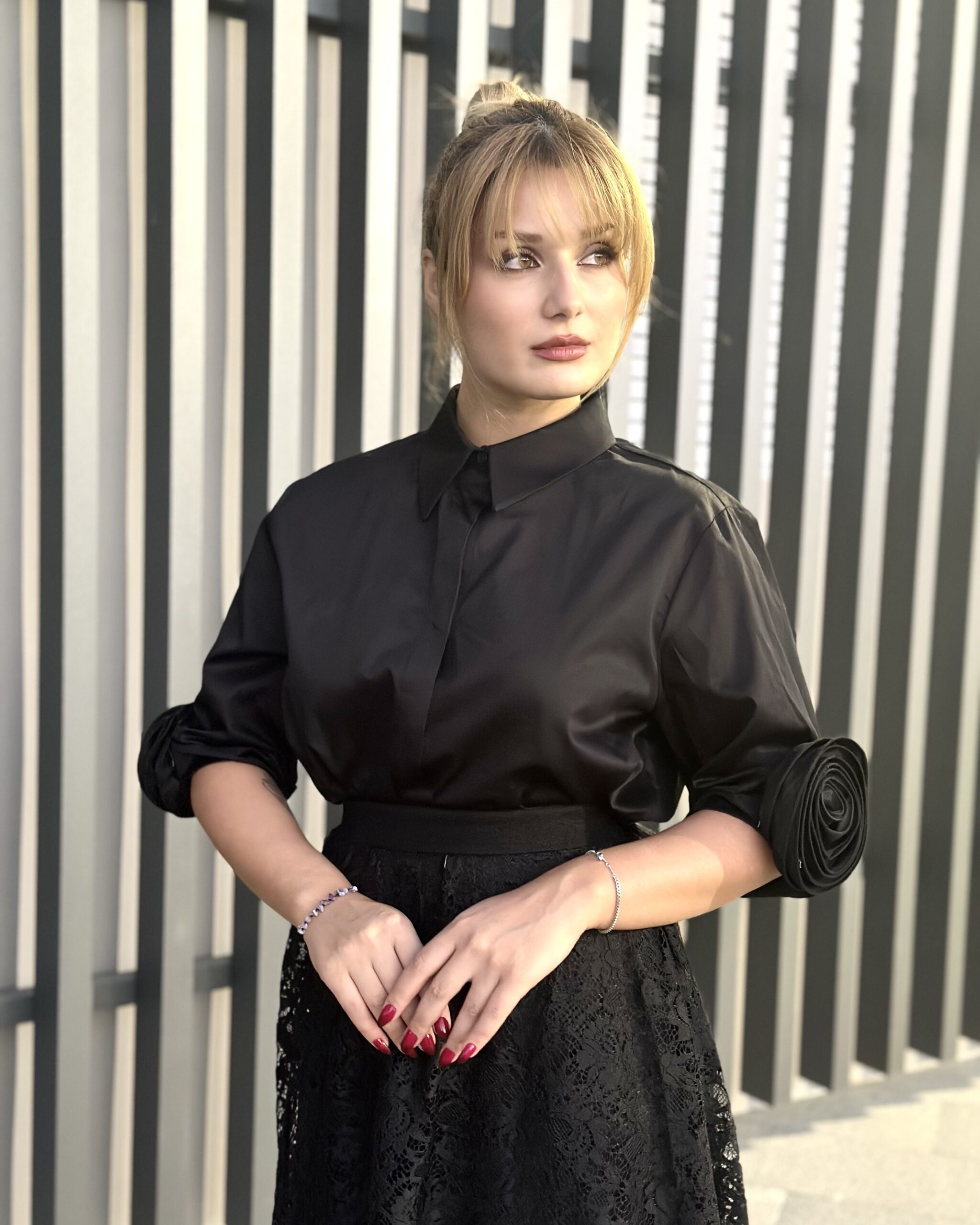 Floral Sleeves White Short Sleeve Shirt – Bloom with Your Elegance Crown your daily elegance with flowers! Floral Sleeves White Short Sleeve Shirt offers comfort and elegance together with its 100% cotton fabric. The highlight of this shirt is the large rose details on the cuffs. These elegant and eye-catching details add a unique touch to your shirt. This shirt, which you can choose with its cool and light structure in the summer months, fits perfectly with every combination with its white color. You can combine it with jeans or skirts to complete your elegance during the day, and you can wear it with stylish trousers or skirts for evening events to attract attention. Dazzling with its fine workmanship and remarkable details, the Floral Sleeves White Short Sleeve Shirt is a candidate to become an indispensable part of your wardrobe. Now renew your wardrobe and make your style unique with the Floral Sleeves White Short Sleeve Shirt.