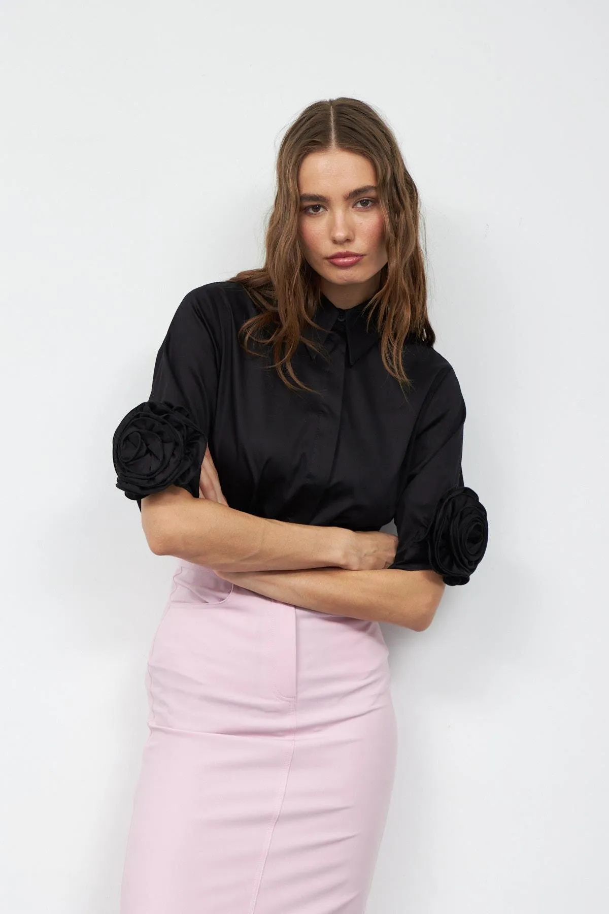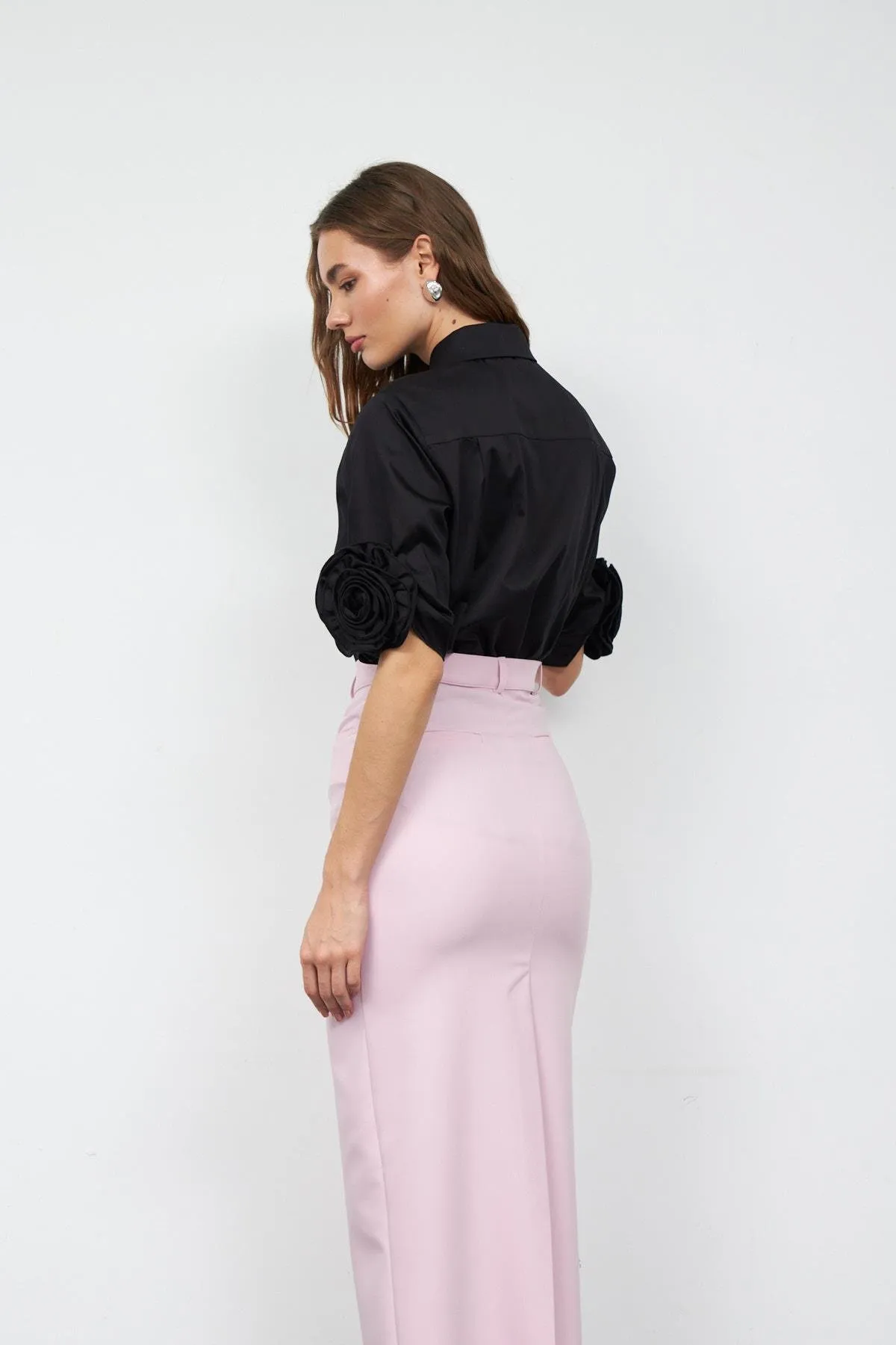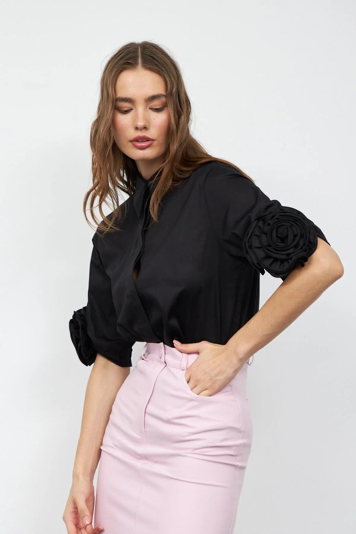 Floral Sleeves White Short Sleeve Shirt – Bloom with Your Elegance Crown your daily elegance with flowers! Floral Sleeves White Short Sleeve Shirt offers comfort and elegance together with its 100% cotton fabric. The highlight of this shirt is the large rose details on the cuffs. These elegant and eye-catching details add a unique touch to your shirt. This shirt, which you can choose with its cool and light structure in the summer months, fits perfectly with every combination with its white color. You can combine it with jeans or skirts to complete your elegance during the day, and you can wear it with stylish trousers or skirts for evening events to attract attention. Dazzling with its fine workmanship and remarkable details, the Floral Sleeves White Short Sleeve Shirt is a candidate to become an indispensable part of your wardrobe. Now renew your wardrobe and make your style unique with the Floral Sleeves White Short Sleeve Shirt.
