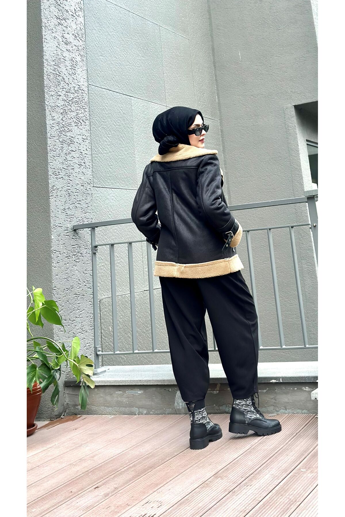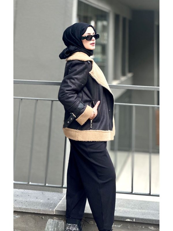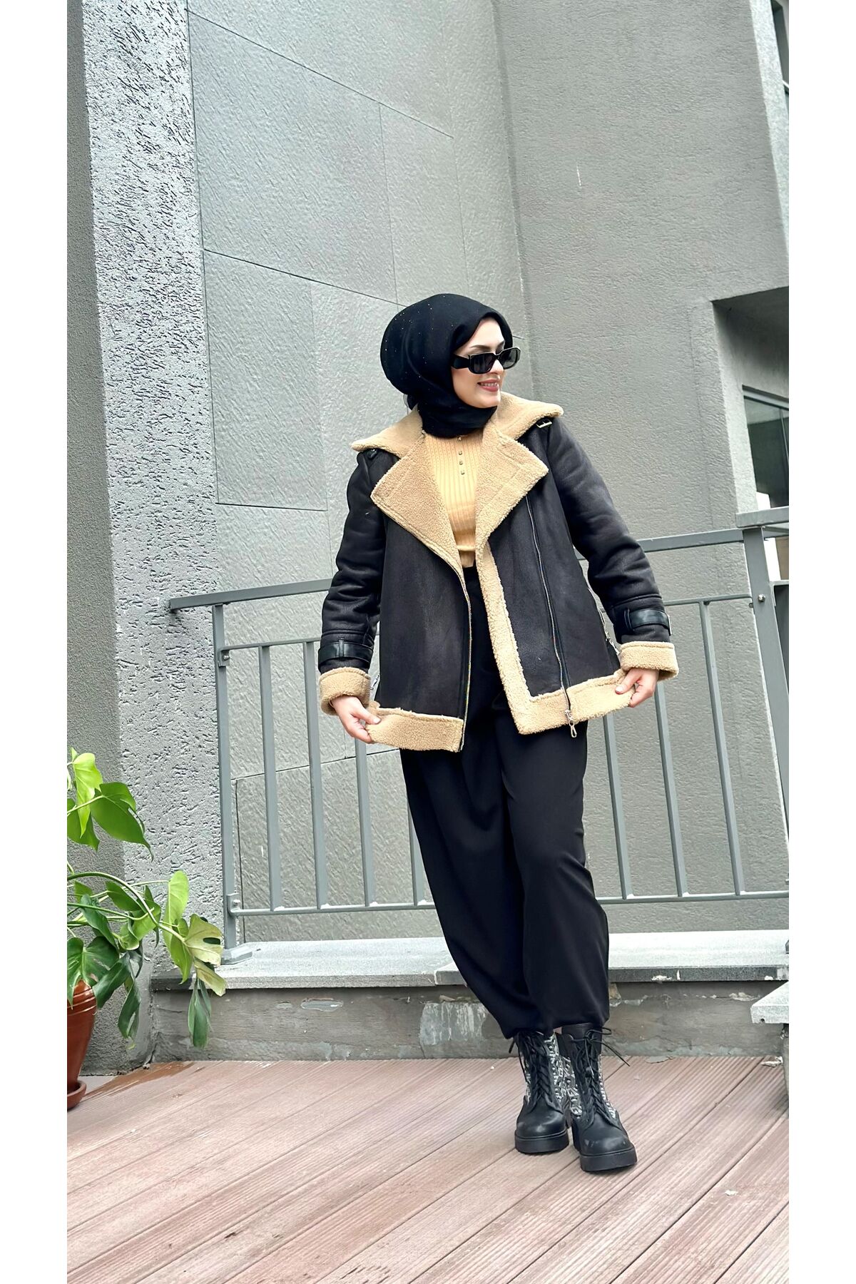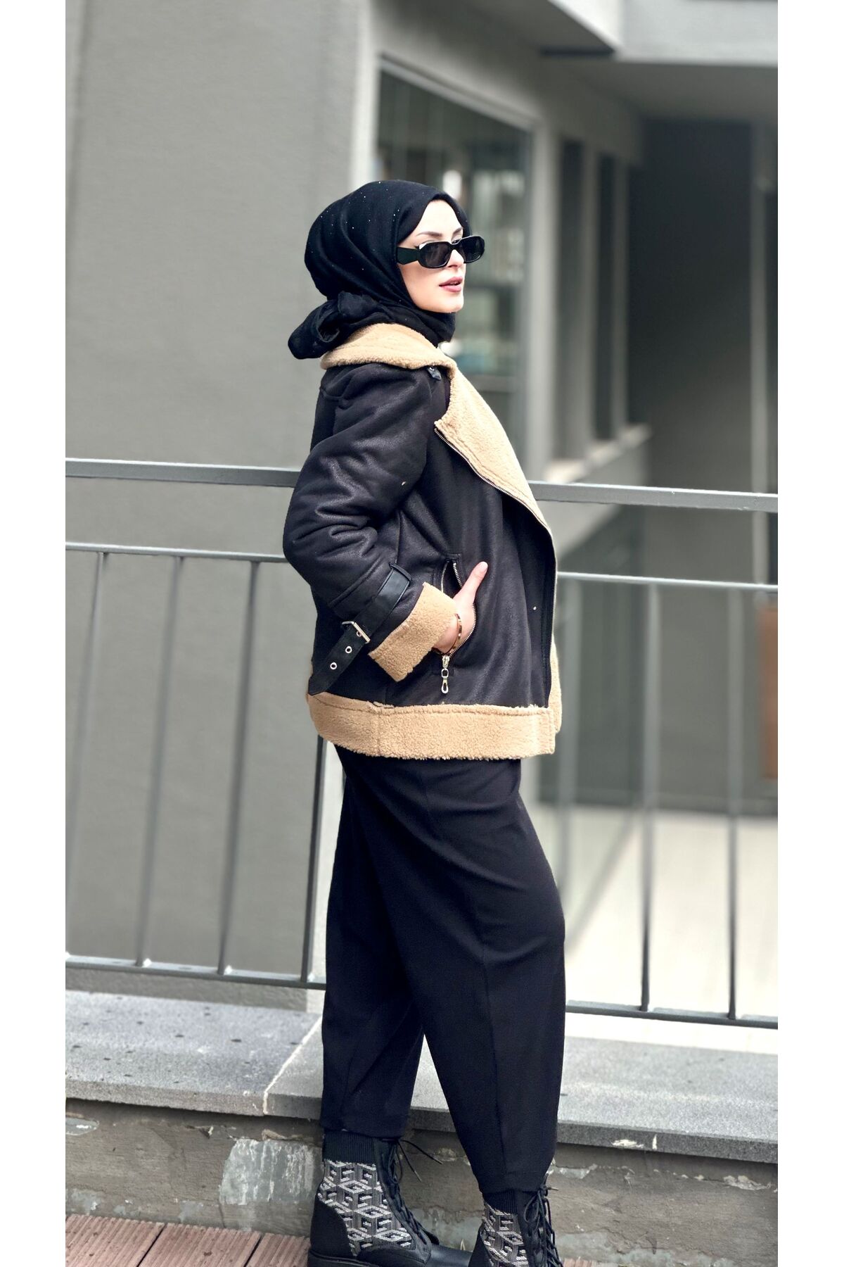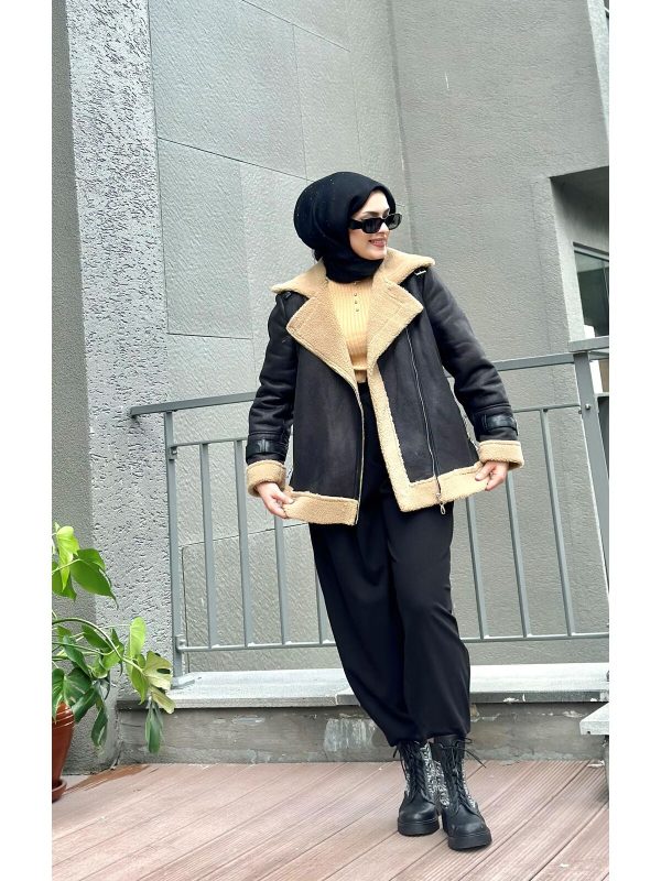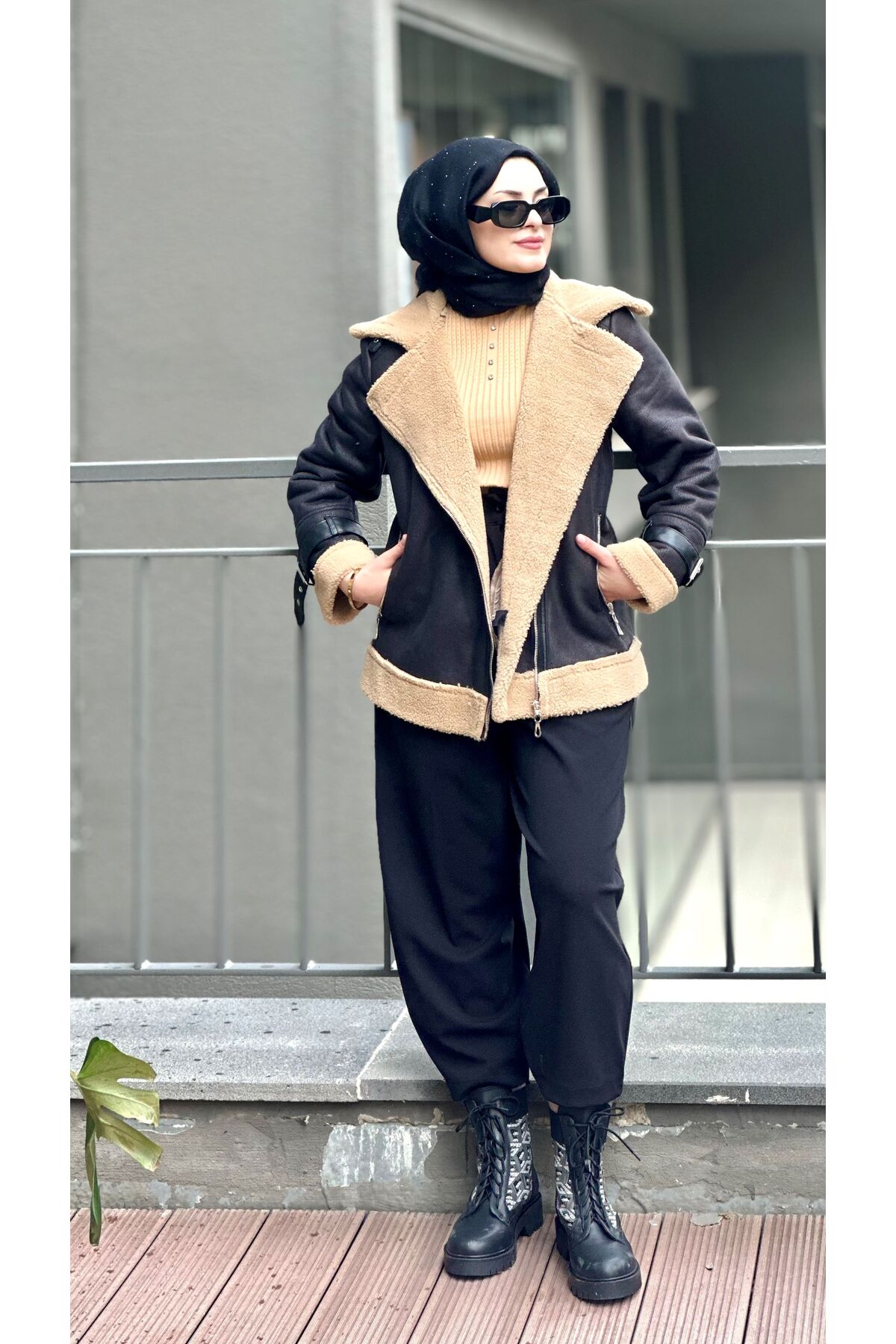 BIKER JACKET SIZE: S-M-L-XL COLOR: BLACK-CAMEL PRODUCT LENGTH: 67 CM SIZE S IS COMPATIBLE WITH SIZE 36, SIZE M IS COMPATIBLE WITH SIZE 38, SIZE L IS COMPATIBLE WITH SIZE 40.