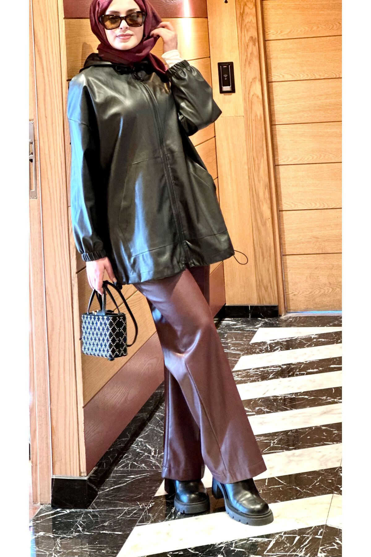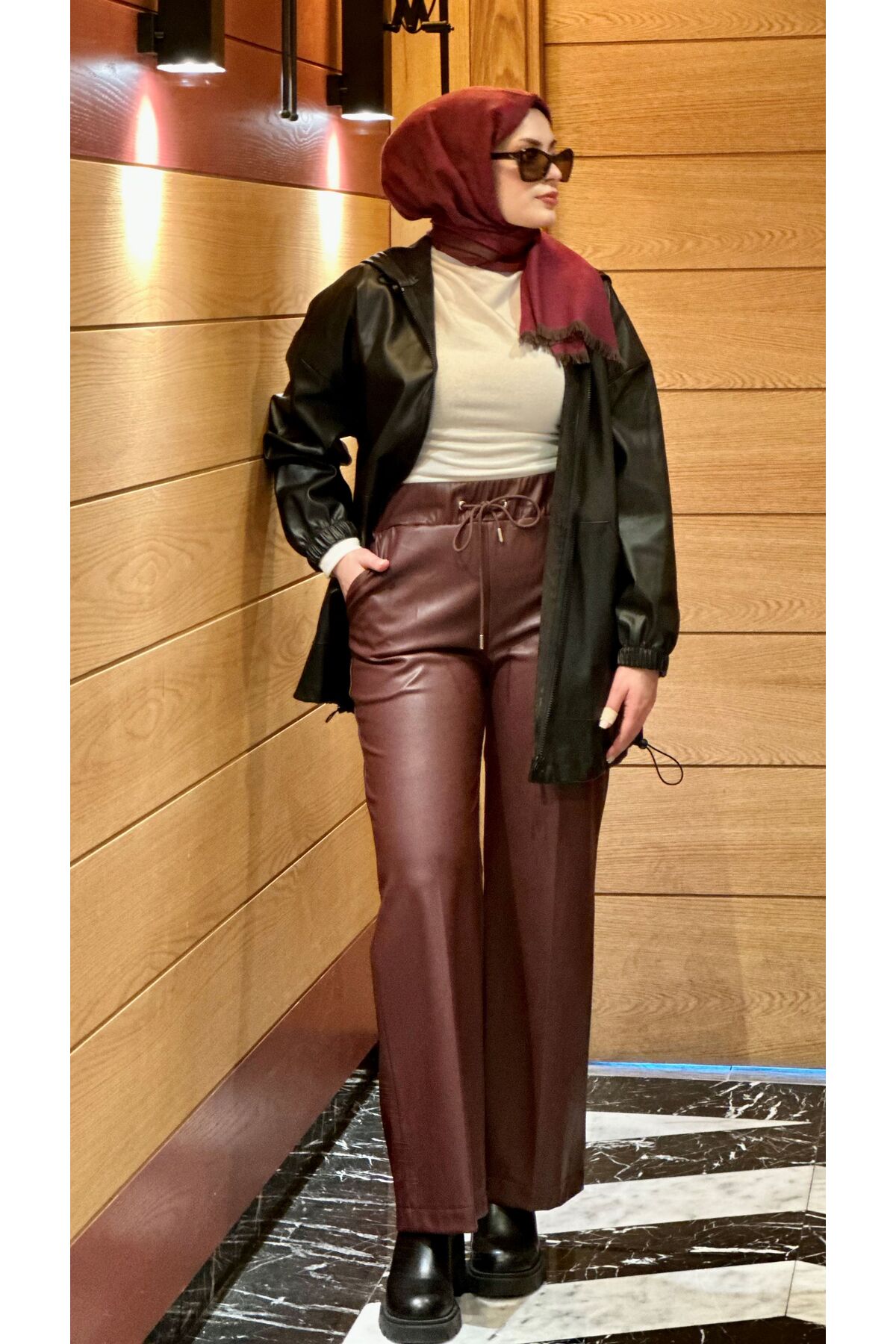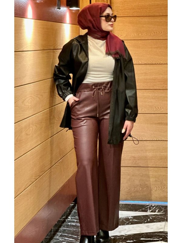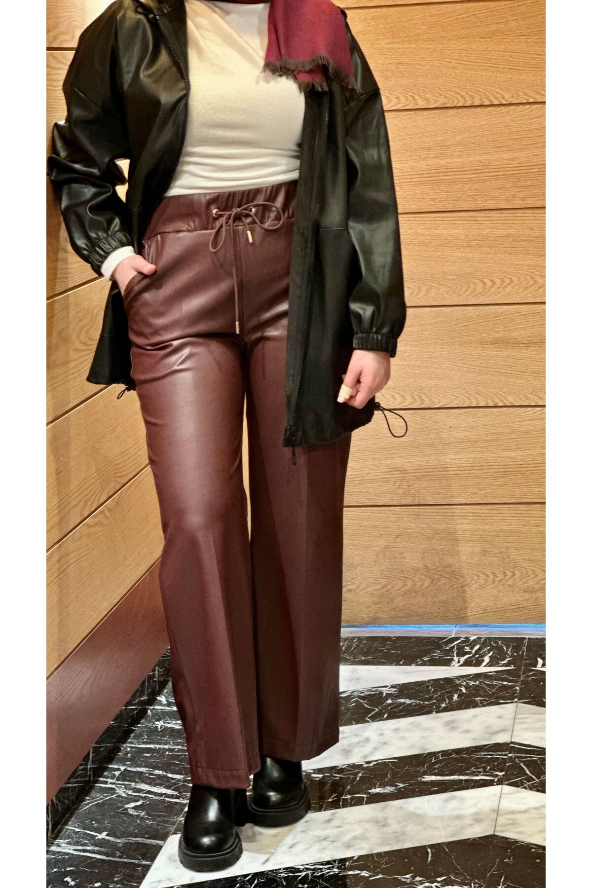 WIDE LEG LEATHER TROUSERS COLOR: TABA AND CLARET RED SIZE: S-M-L PRODUCT LENGTH: 100 CM