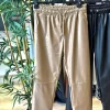 LEATHER TROUSERS SIZE: S-M-L, COLOR: GOLD, BLUE, BLACK PANTS LENGTH: 98 CM. THE WAIST HAS AN ELASTIC WAIST, IT HAS A DRESS ON THE INSIDE!!! SIZE S IS COMPATIBLE WITH 34, SIZE M IS COMPATIBLE WITH 36-38, SIZE L IS COMPATIBLE WITH 40; IT IS Narrow,