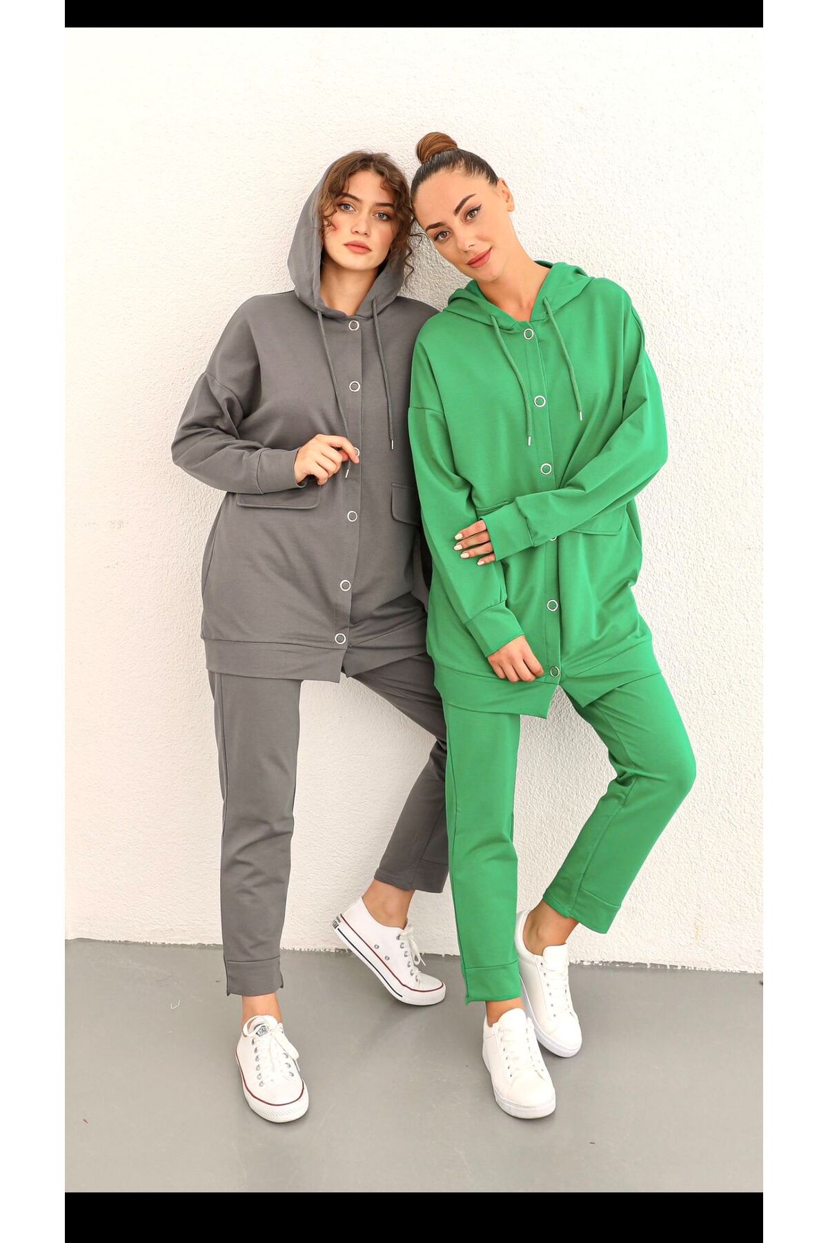 2 THREAD SUIT COLOR: GREEN SIZE: STD PRODUCT LENGTH, JACKET LENGTH: 77 CM TROUSERS LENGTH: 91 CM IT IS HOODED AND BUTTONED.!!! THE SALES PRICE IS FOR A ONE SET. IT IS ADDED TO INDICATE THE VISUAL COLOR.