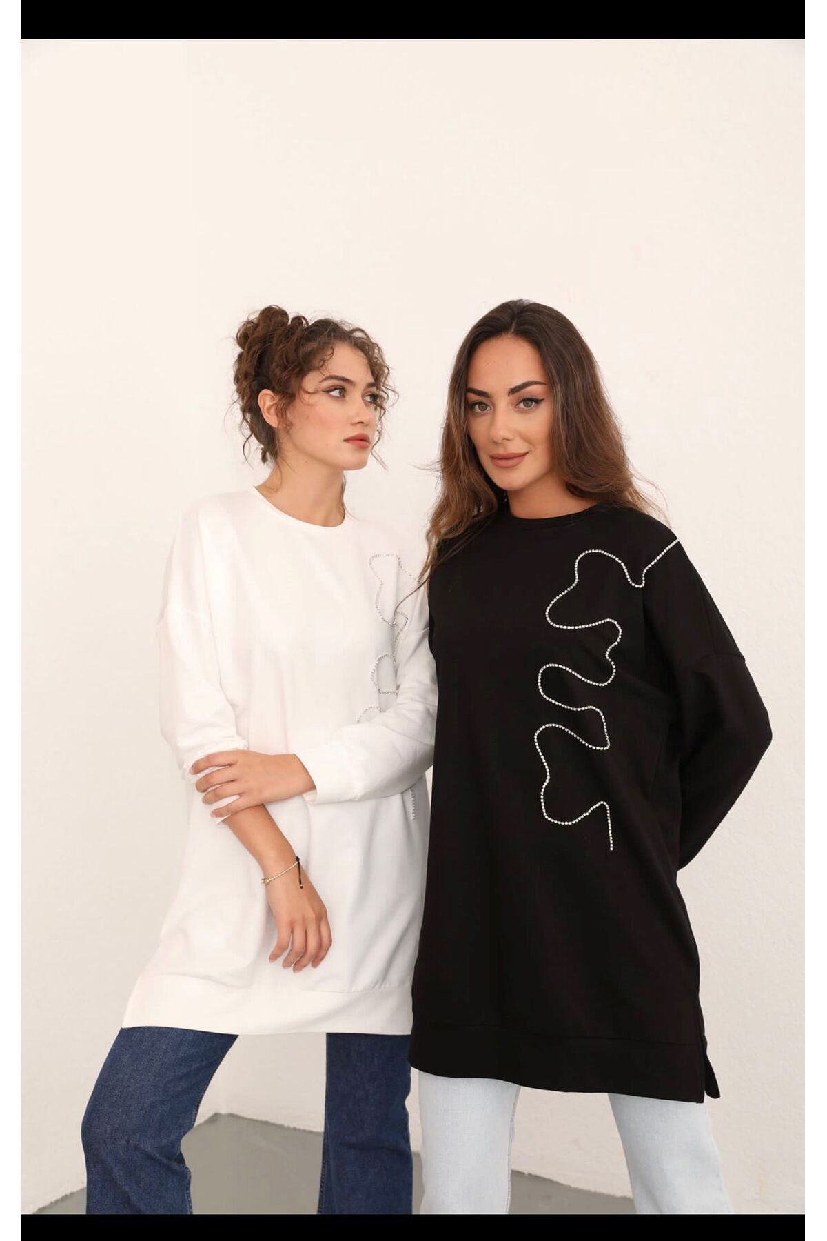 Sweatshirt WITH STONE EMBROIDERED DETAIL size: std colour: WHITE (black and white colors are available.) product length: 81 cm IT HAS STONE EMBROIDERED DETAIL AND WITHOUT POCKET!!! SALES PRICE IS FOR ONE SWEATSHIRT.