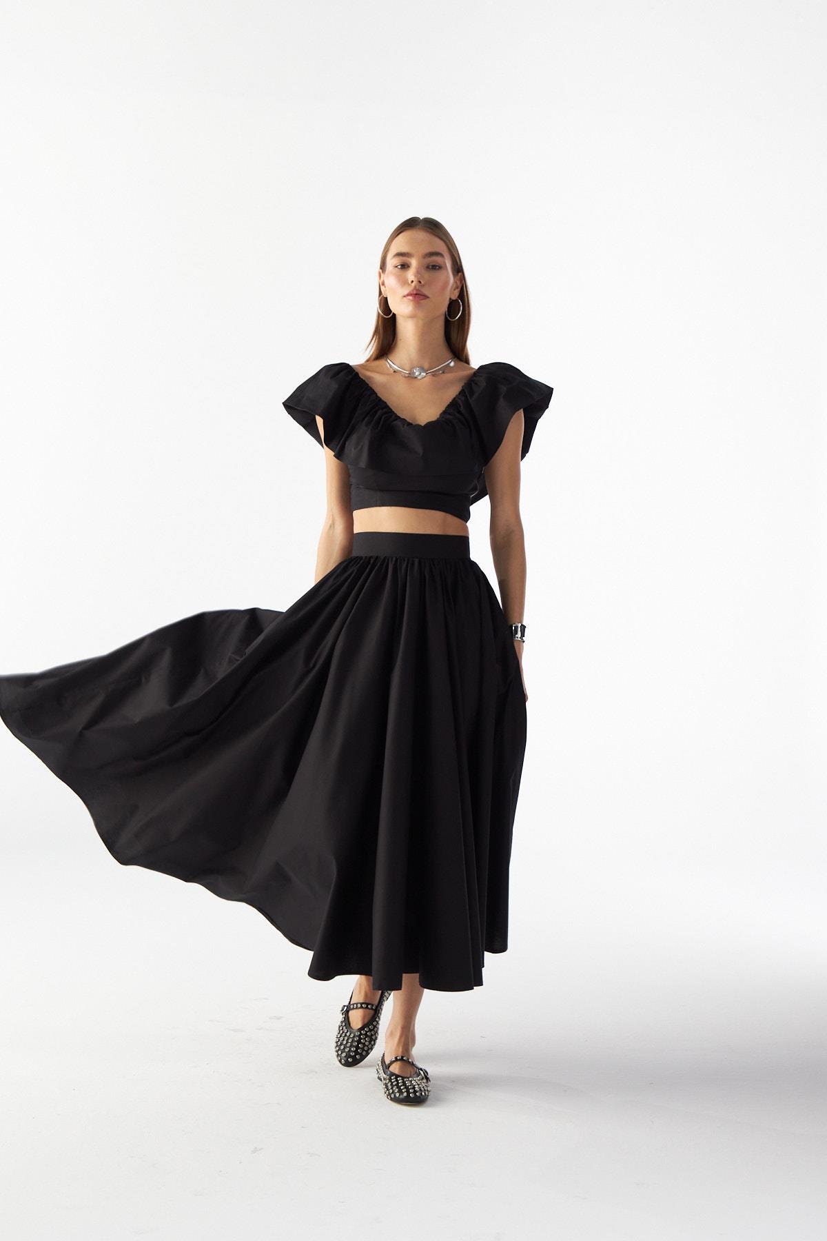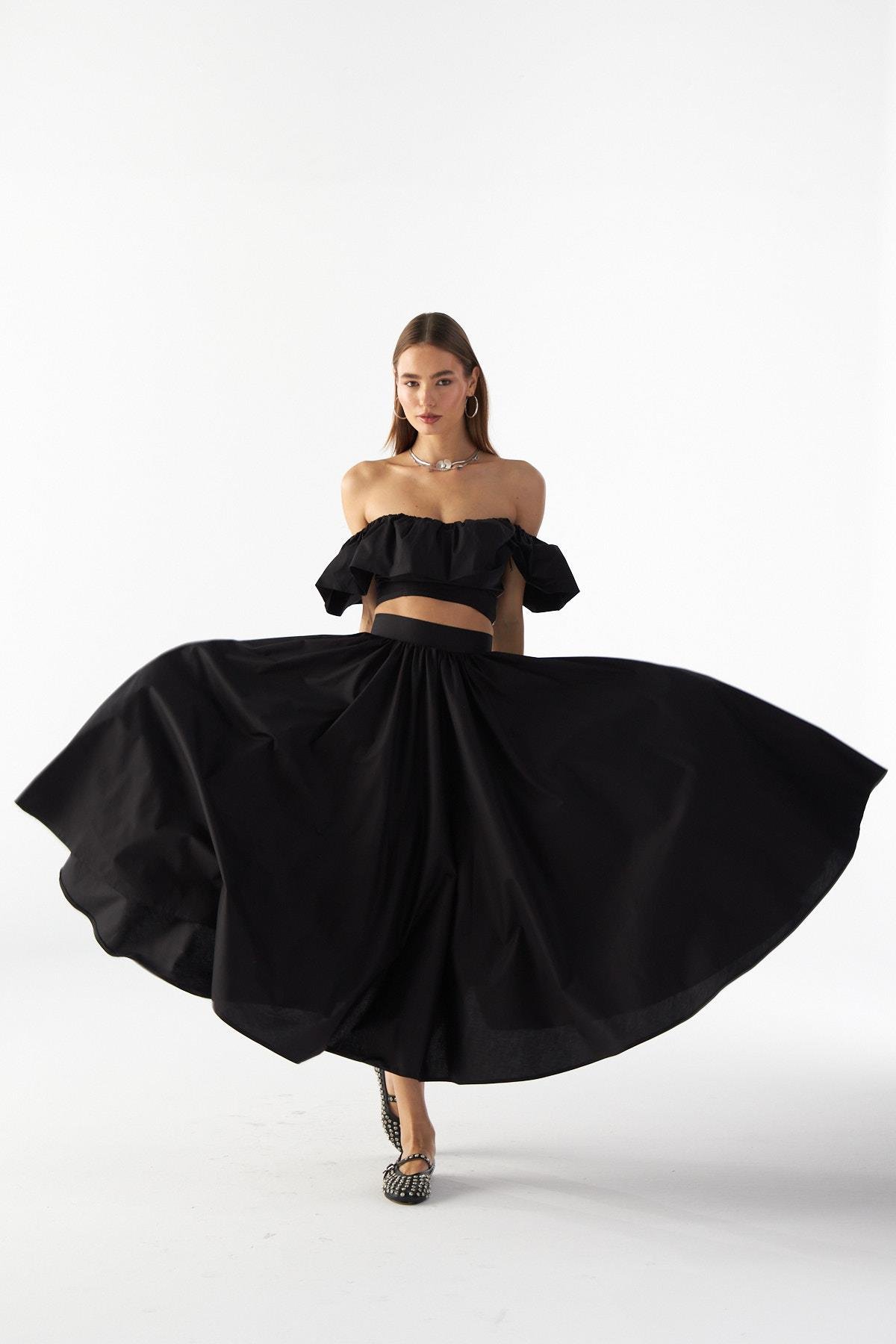 Nok Classic Signature Puffy Maxi Length Skirt Black