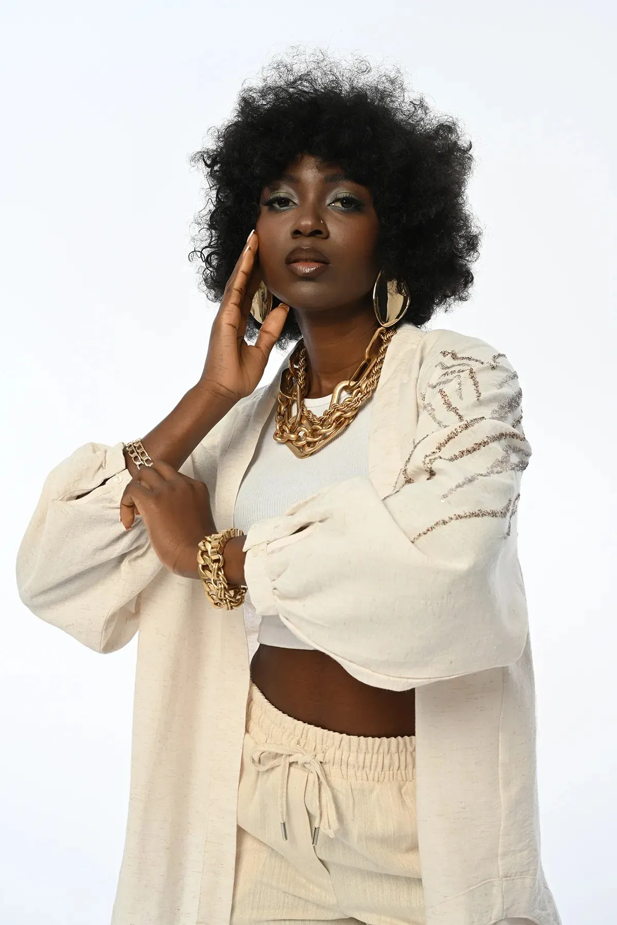 OVERSIZE CUT KIMONO JACKET WITH SEQUIN EMBROIDERY ON SLEEVES AND BACK