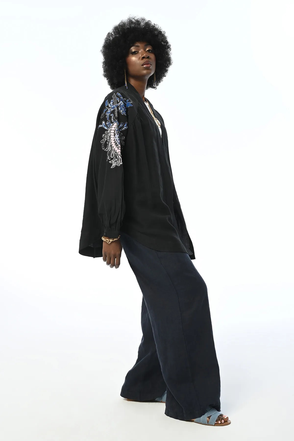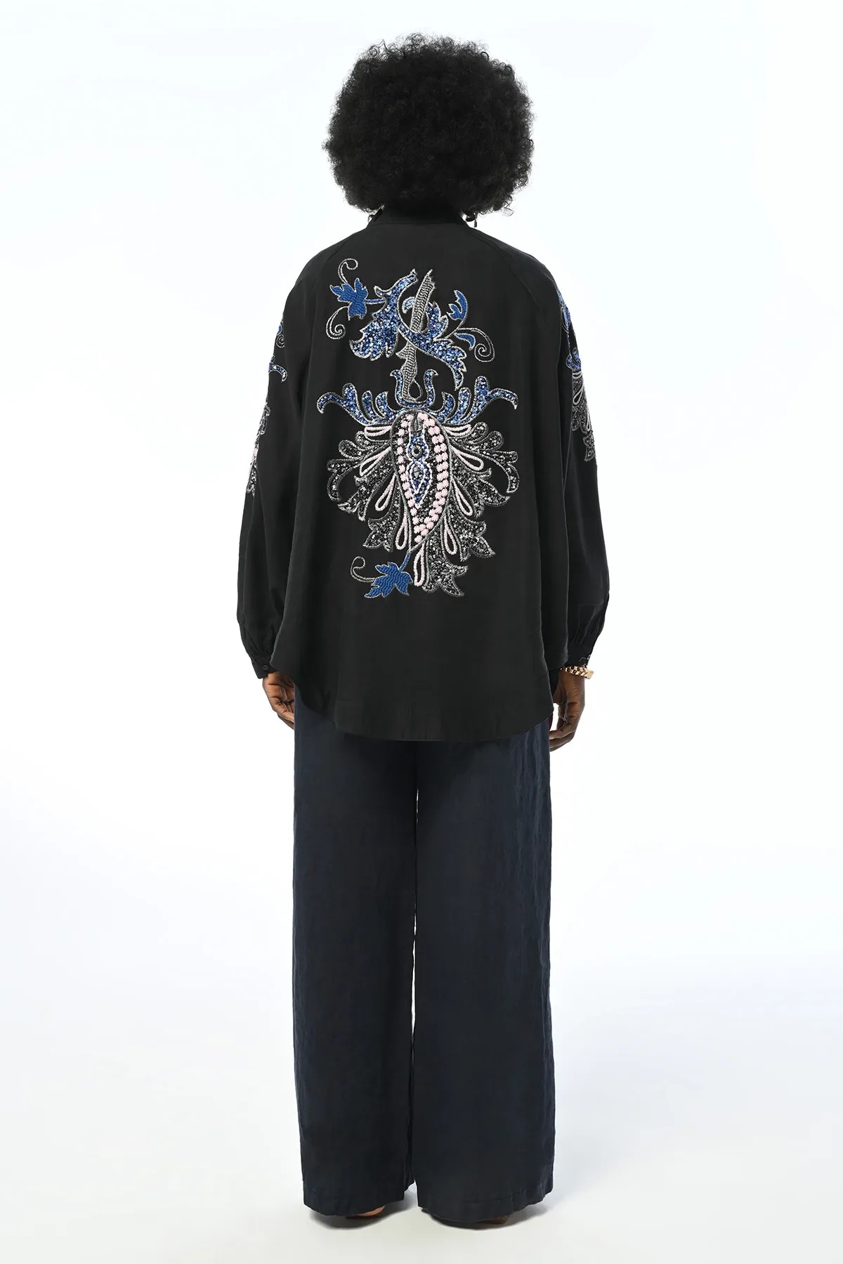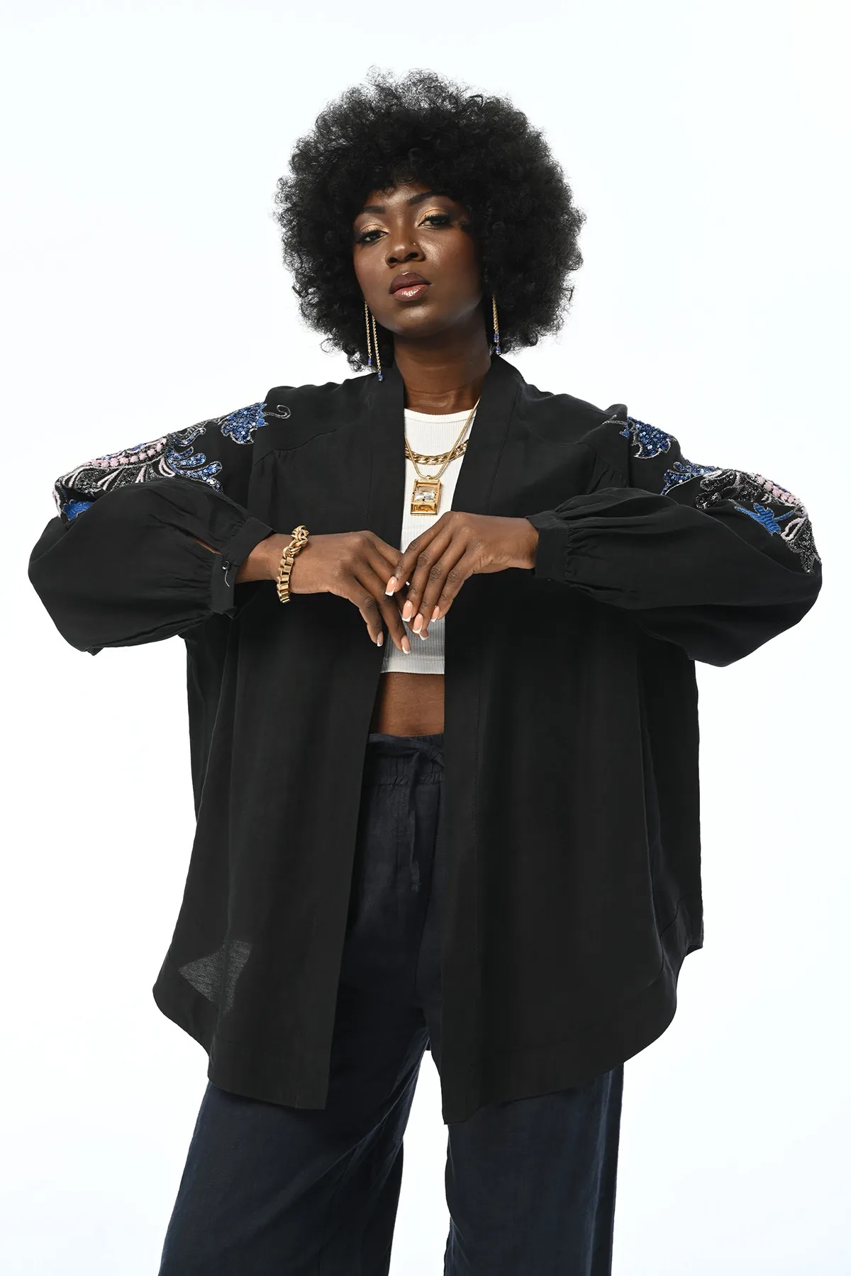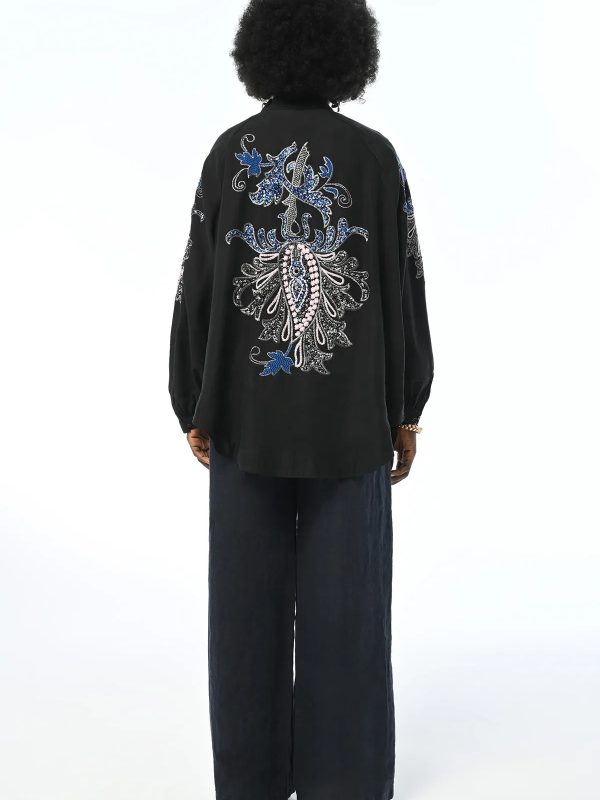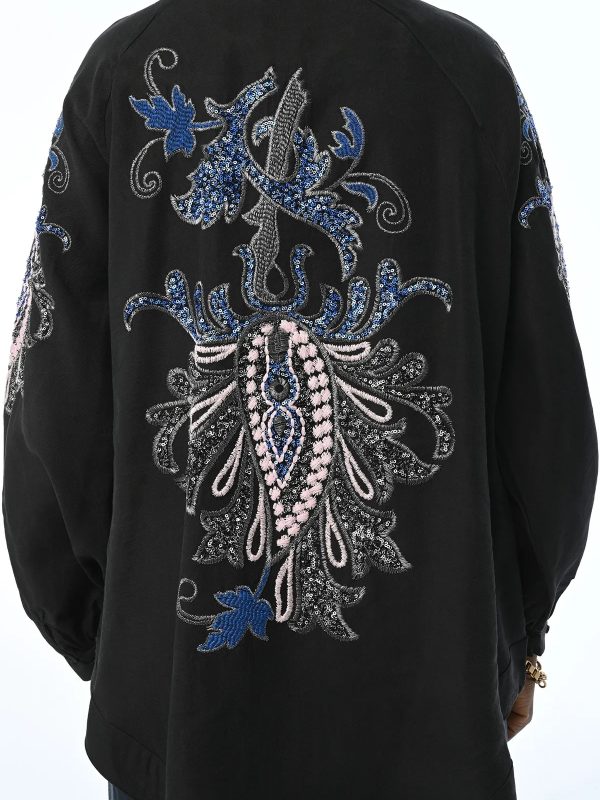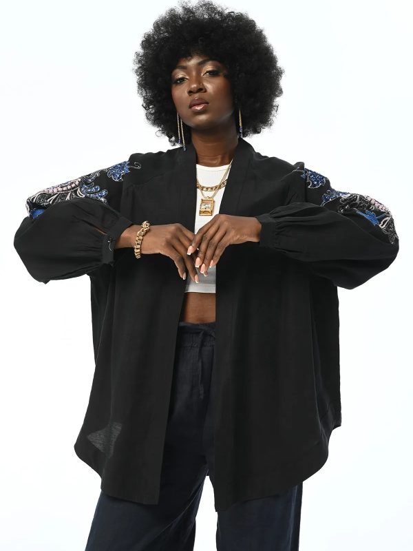 ORFEO NEGRO OVERSIZE KIMONO JACKET WITH EMBROIDERED BACK AND SLEEVES