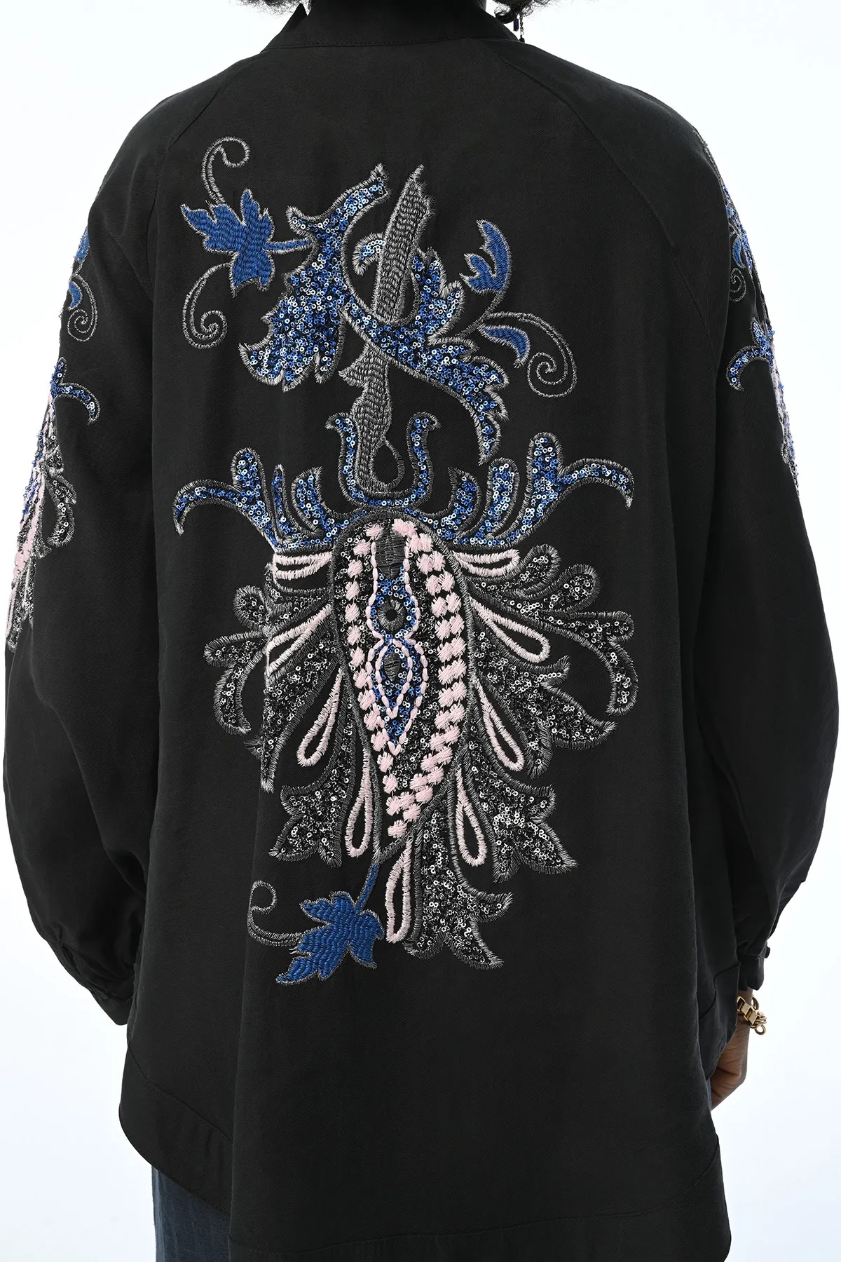 OVERSIZE KIMONO JACKET WITH EMBROIDERED BACK AND SLEEVES