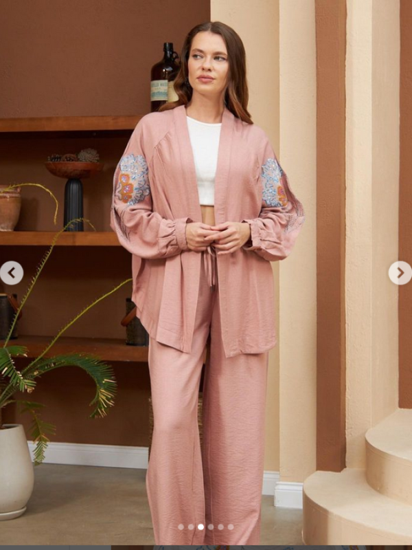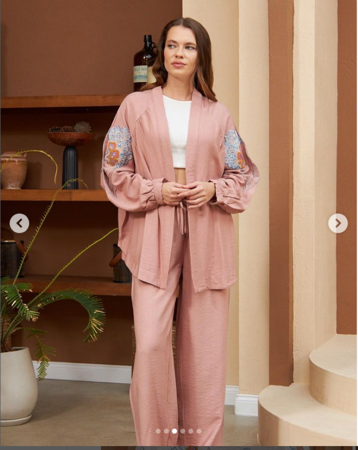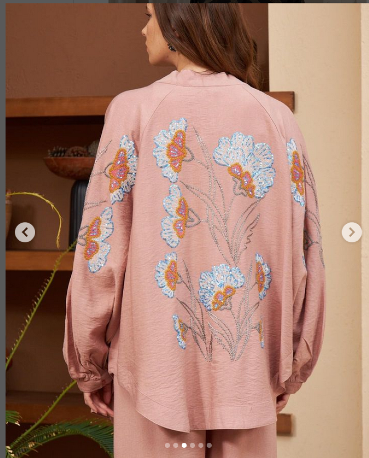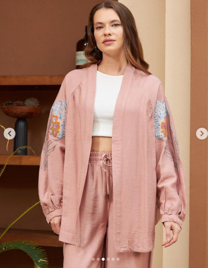 OVERSIZE KIMONO JACKET WITH EMBROIDERED FLOWER PATTERN ON BACK AND SLEEVES