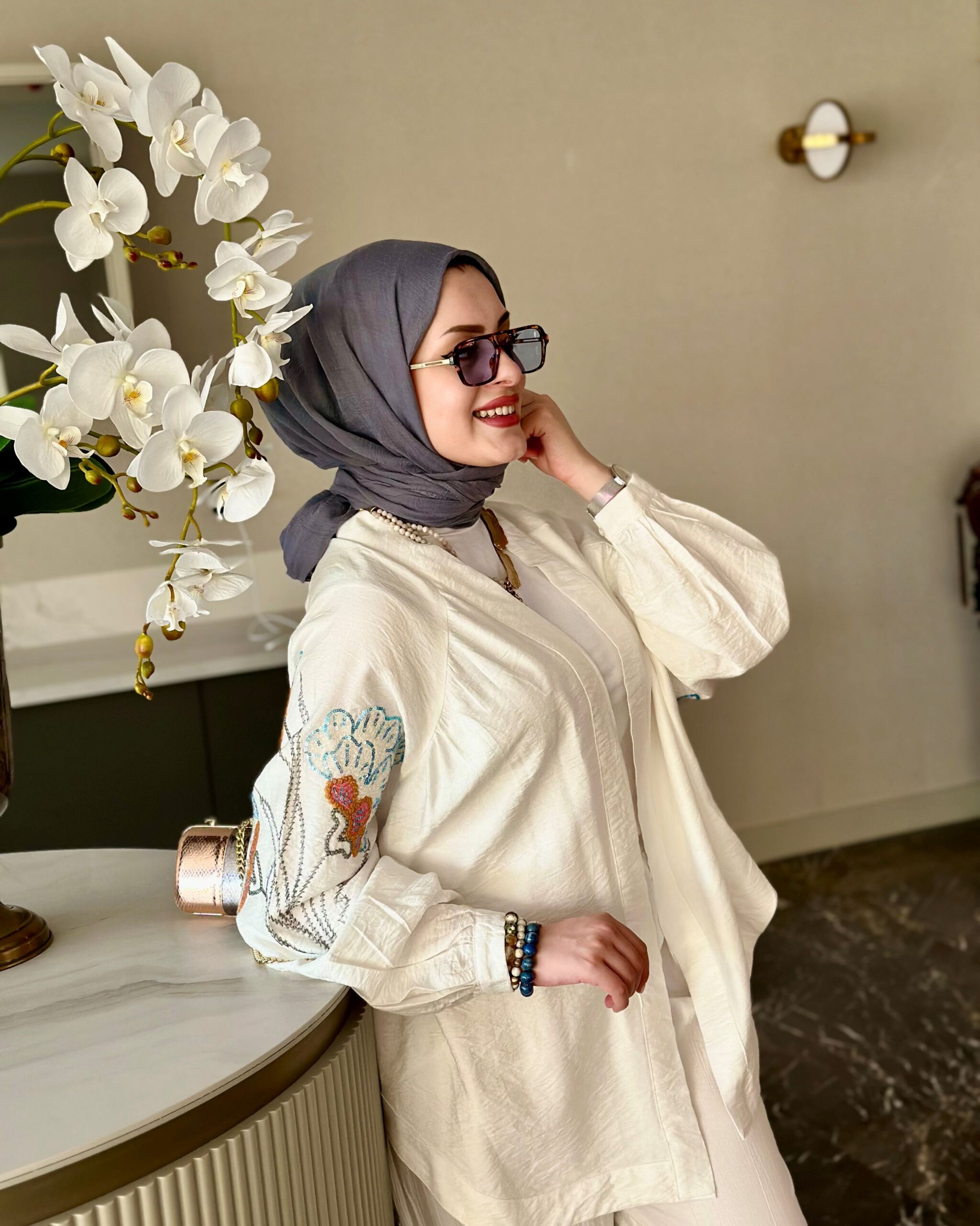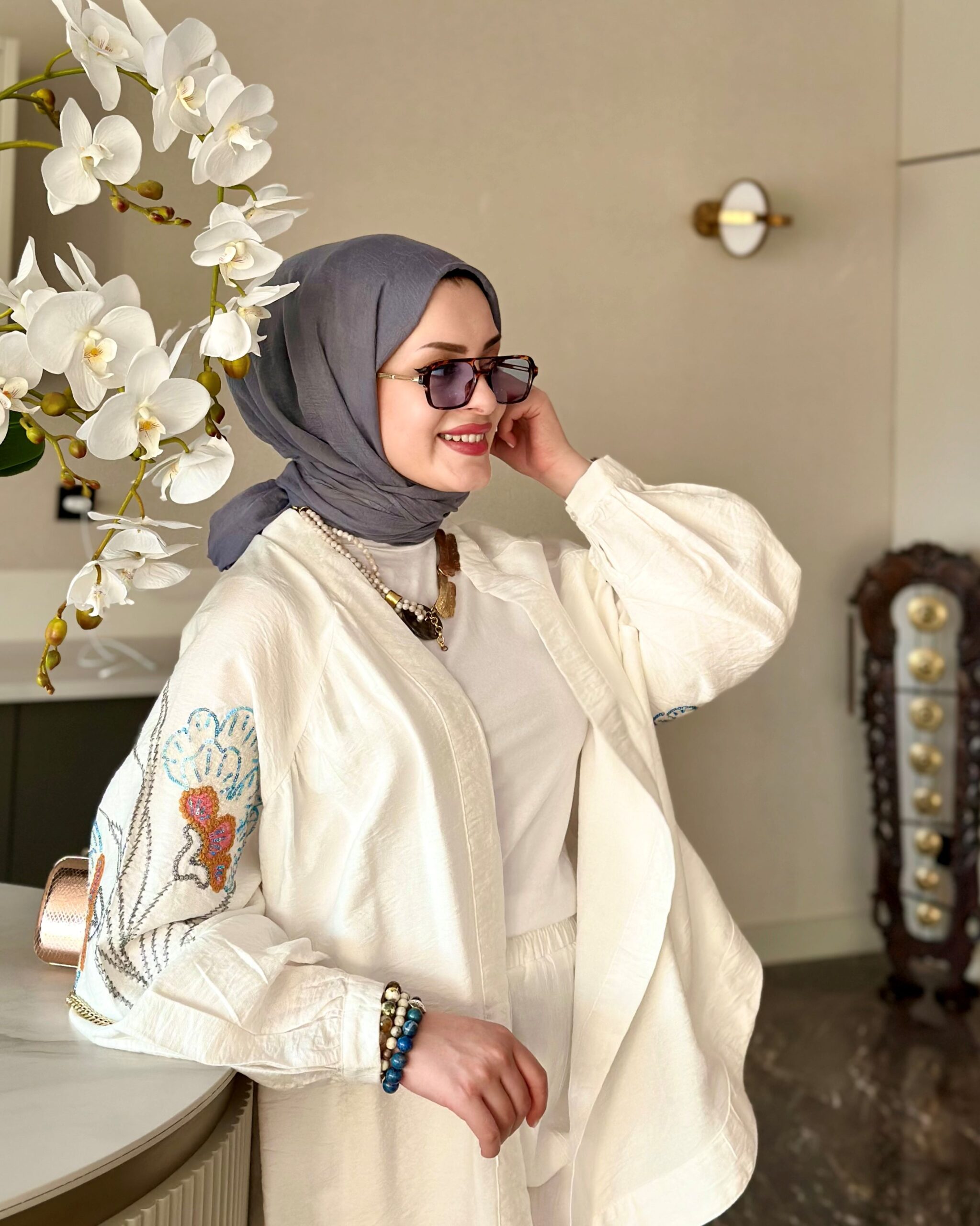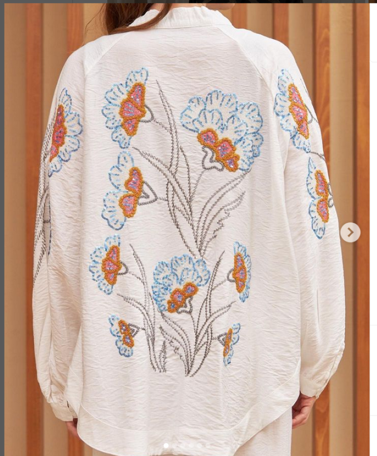 OVERSIZE KIMONO JACKET WITH EMBROIDERED FLOWER PATTERN ON BACK AND SLEEVES