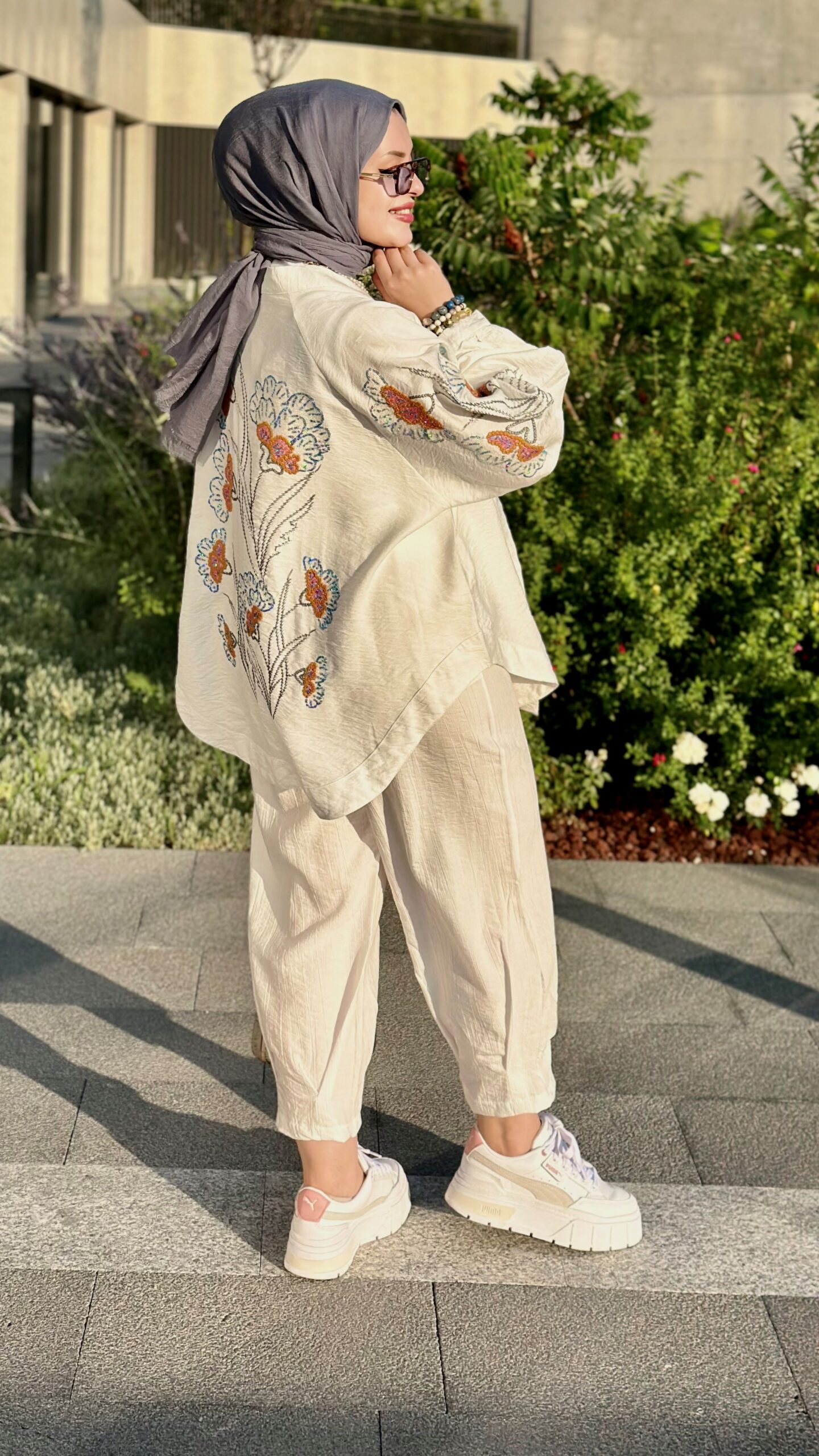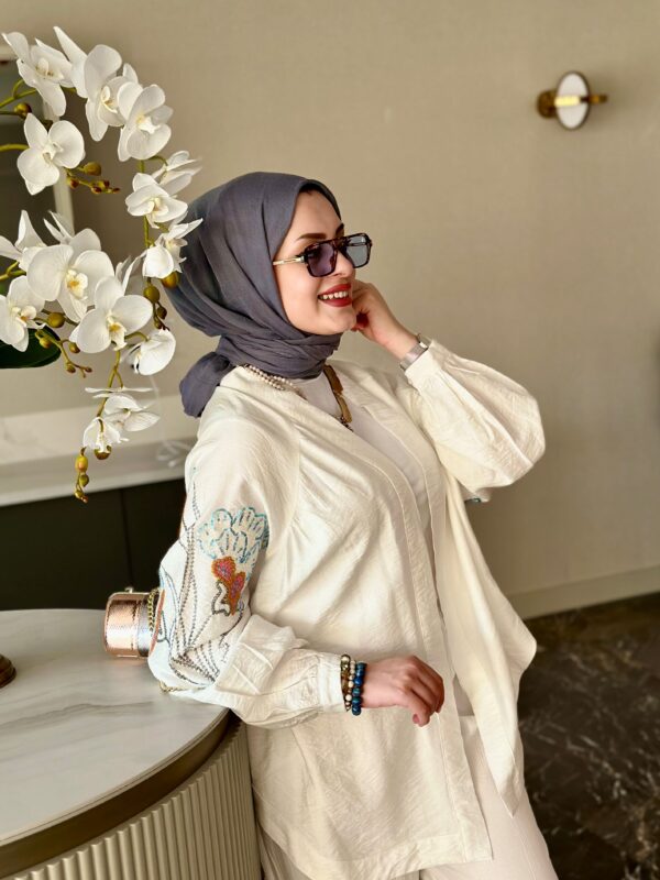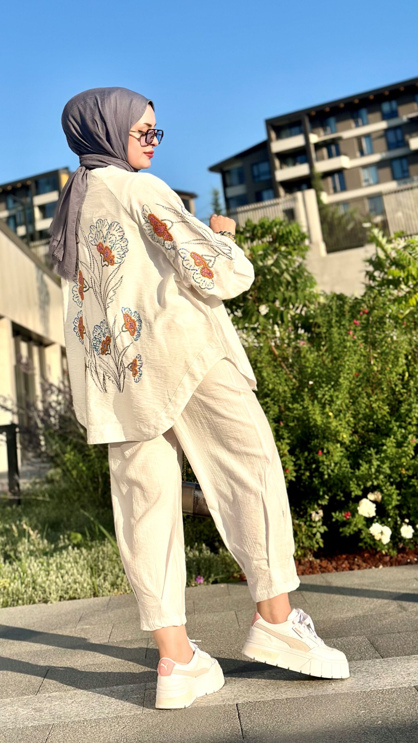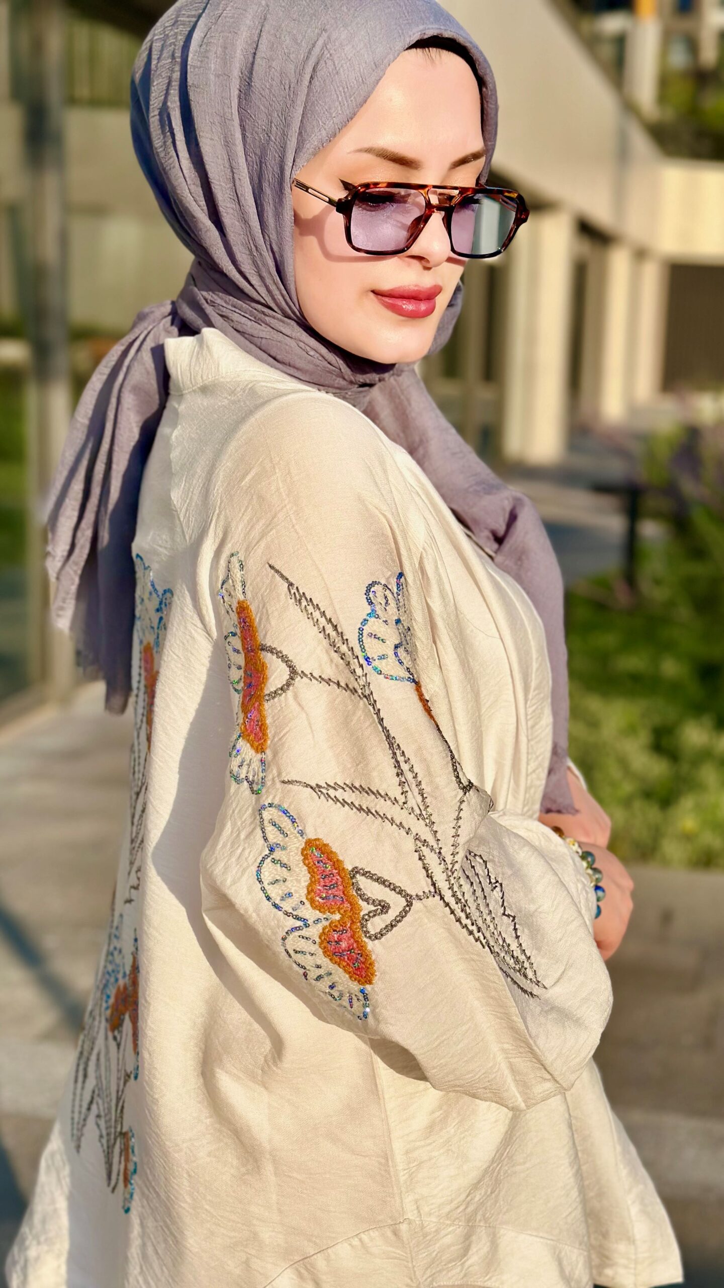 OVERSIZE KIMONO JACKET WITH EMBROIDERED FLOWER PATTERN ON BACK AND SLEEVES