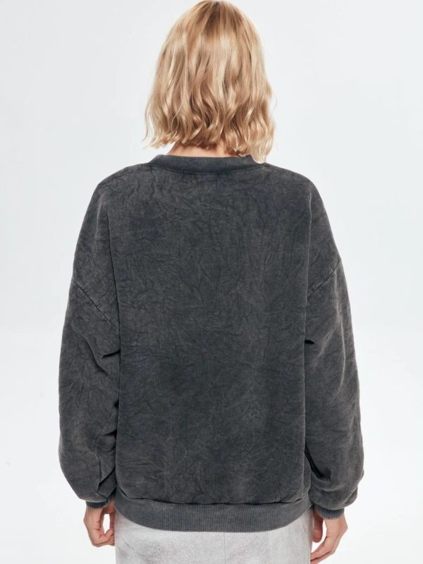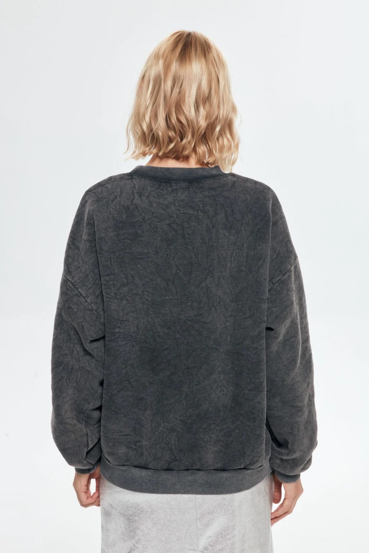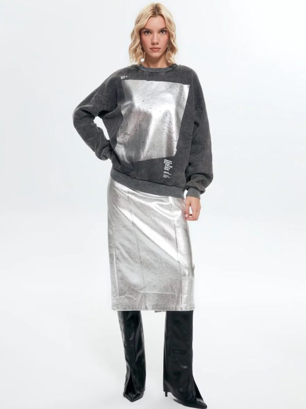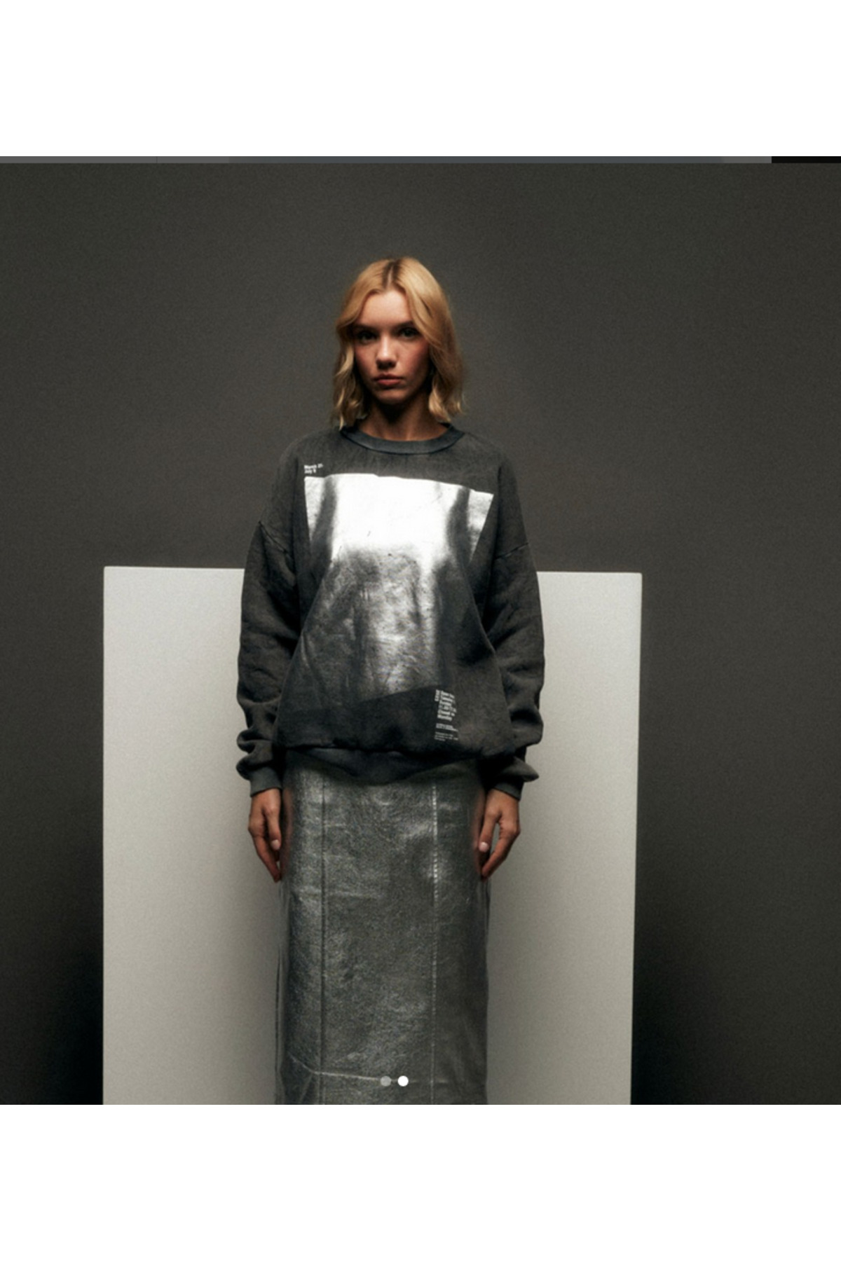 FOIL PRINTED SWEATSHIRT COLOR: ANTHRACITE SIZE S-M-L PRODUCT LENGTH: 67 CM FABRIC: 65% COTTON, Product/Mannequin Measurements: Height: 67 cm Chest: 68 cm