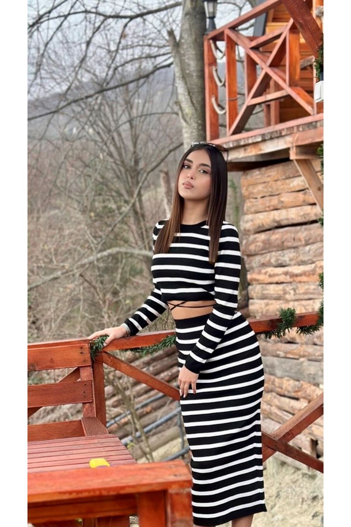 PENCIL SKIRT KNITWEAR SUIT COLOR: BLACK AND WHITE SIZE: STD PRODUCT SIZE