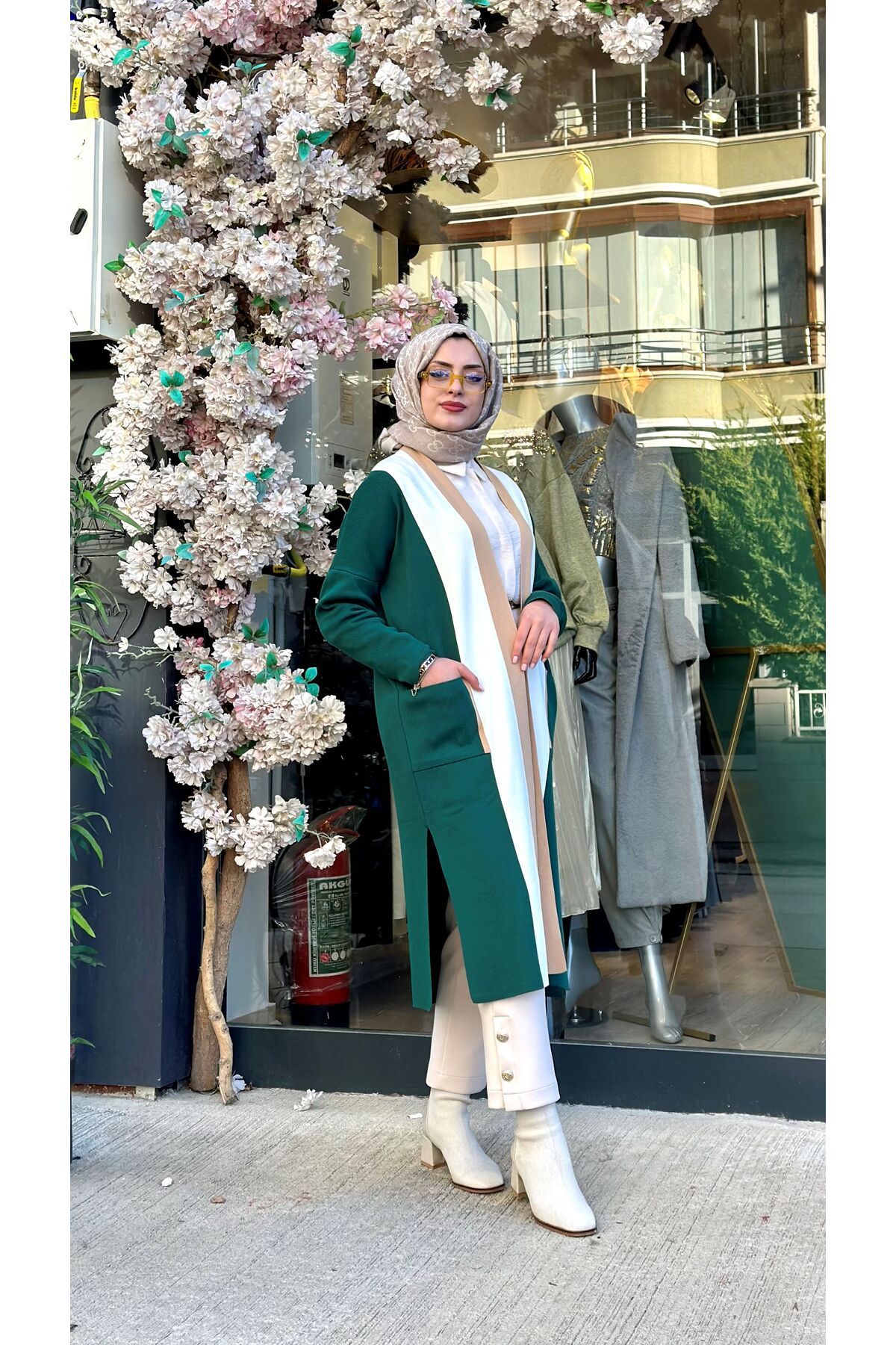 KNITWEAR CAP COLOR: GREEN SIZE.STD PRODUCT LENGTH: FRONT LENGTH: 107 CM, BACK LENGTH: 110 CM MEASUREMENT BETWEEN 2 SLEEVES: 132 CM, LOW SLEEVE, WITHOUT POCKET. SHAWLIA.