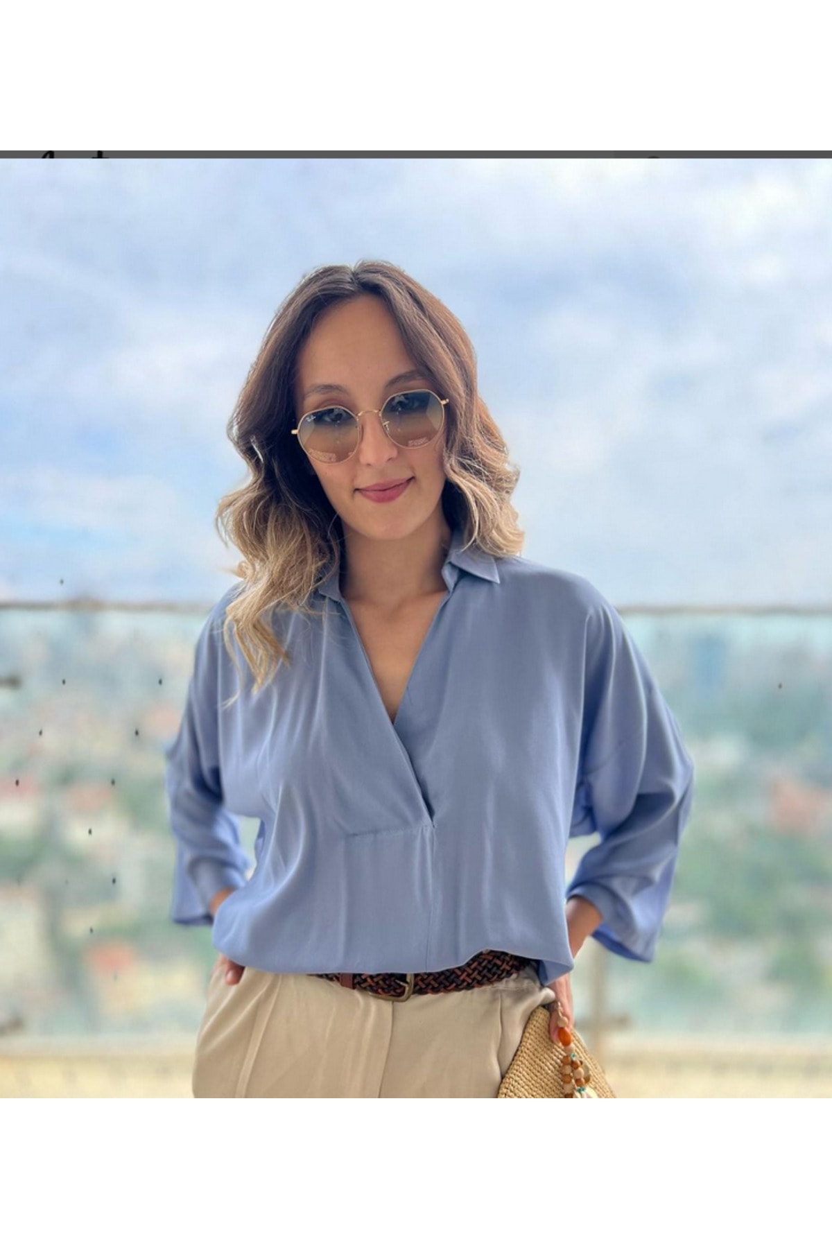 BLOUSE SIZE: STANDARD DOUBLE-BREASTED COLLAR IT IS A SUMMER PRODUCT COLOR: BLUE WITHOUT POCKET