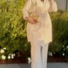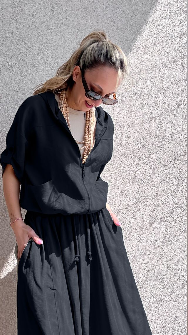 THE JACKET HAS BUTTON DETAILS ON THE SLEEVES