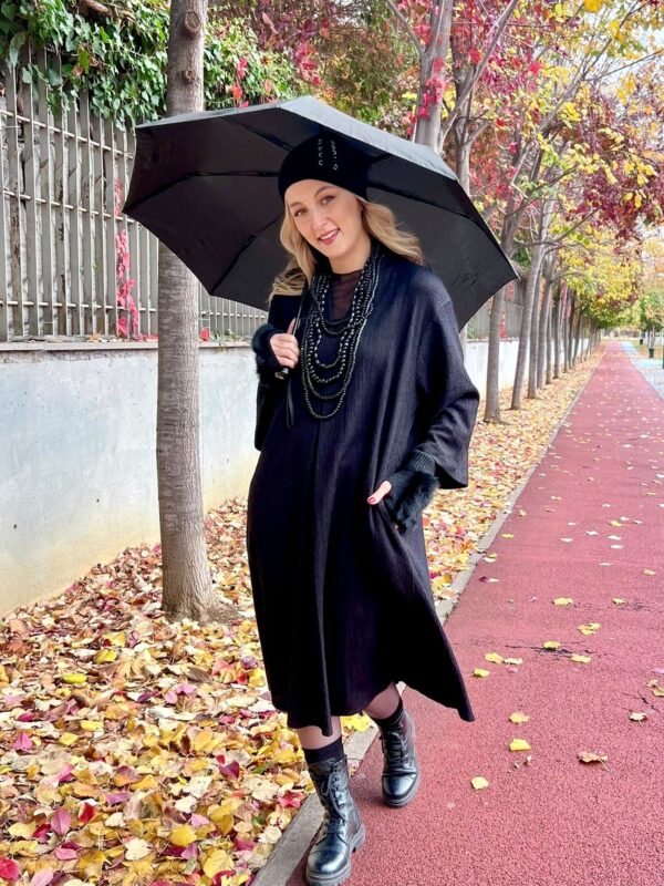 Uzun kollu tasarımı ile kış aylarında şıklığınızdan ödün vermeden sıcak kalmanızı sağlar. – V yaka kesimi sayesinde zarif bir boyun hattı sunar ve feminen çizgileri ön plana çıkarır. – Baskısız yapısı ile sade ve şık bir görünüm elde edersiniz; her türlü aksesuarla kolayca kombinleyebilirsiniz. – Orta kalınlıkta kumaşı, mevsim geçişlerinde ideal konforu sağlar. – Detaysız tasarımı, minimalist ve modern bir stil arayanlar için idealdir. – Tüylenme yapmayan kumaşı uzun süreli kullanım için dayanıklılık sunar. – Astarsız yapısıyla hafiflik ve rahatlık hissi verirken, gizli cepleri pratik kullanım imkanı tanır. – Kemersiz tasarımı sayesinde rahat bir oturuş sağlar ve farklı bel ölçülerine uyum gösterir. – Design koleksiyonuna ait bu parça, trend ortamlarda dikkat çekici bir stil oluşturmanızda yardımcı olur. – Kloş silueti ile feminen hatlarınıza vurgu yaparak hareket özgürlüğü sunar. – Düz deseniyle kolayca kombinlenebilirlik ve zamansız bir görünüm kazandırır. – Kapamasız yapısı,ÜRÜN BOY:121 CM, BEDEN.STANDART(36-44) UYUMLUDUR