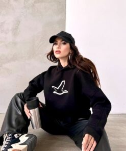 KUŞLU ŞARDONLU KAPŞONLU SWEATSHIRT