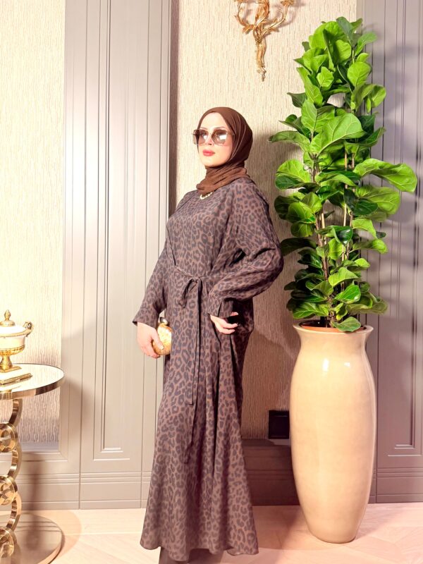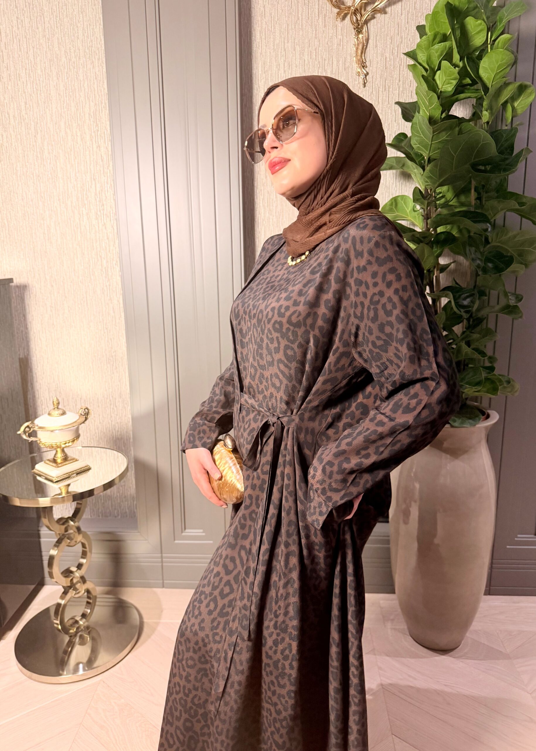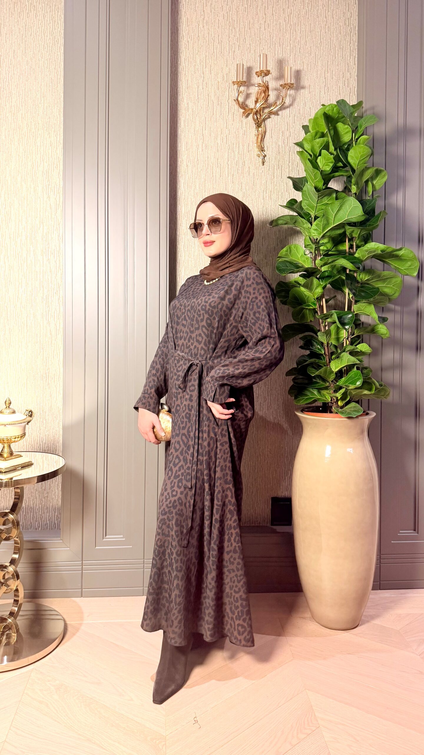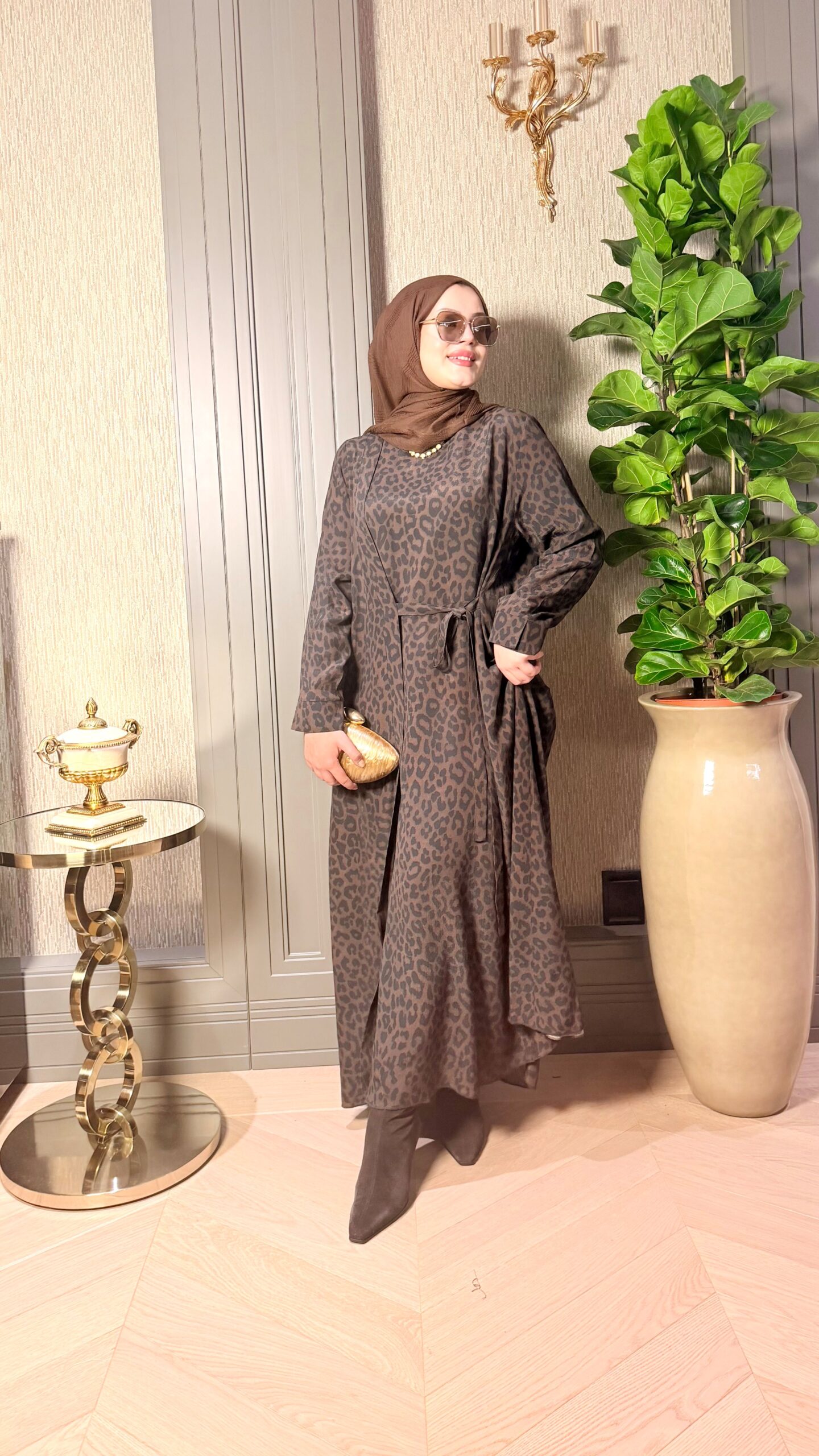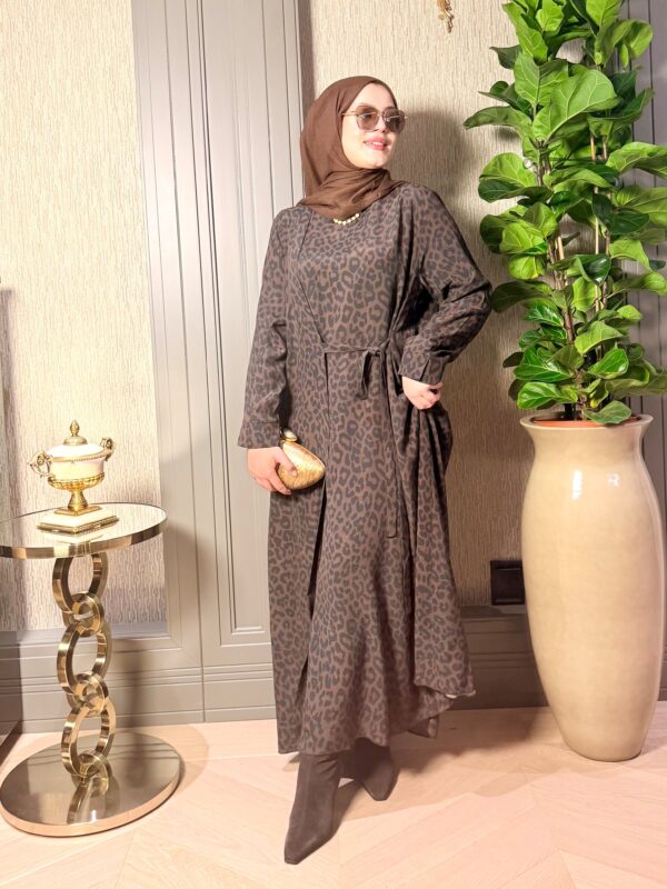 NOİ MAROKEN LEOPARLI ÖNDEN BAĞLAMALI ELBİSE
