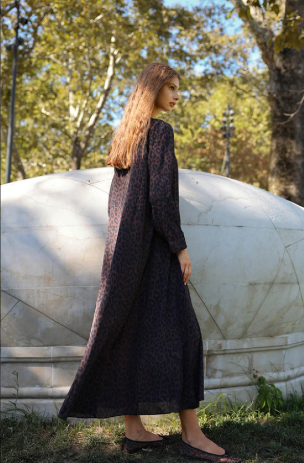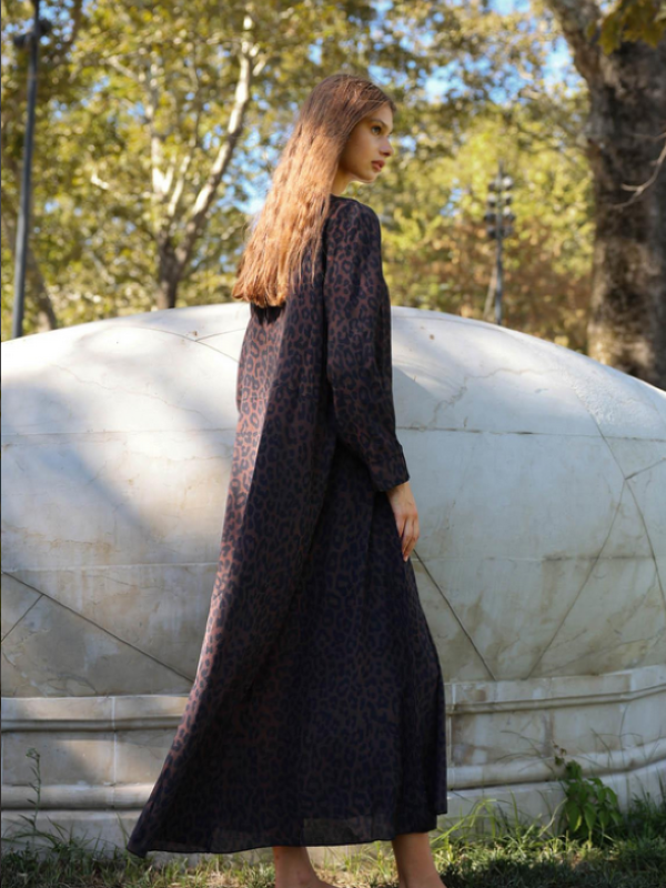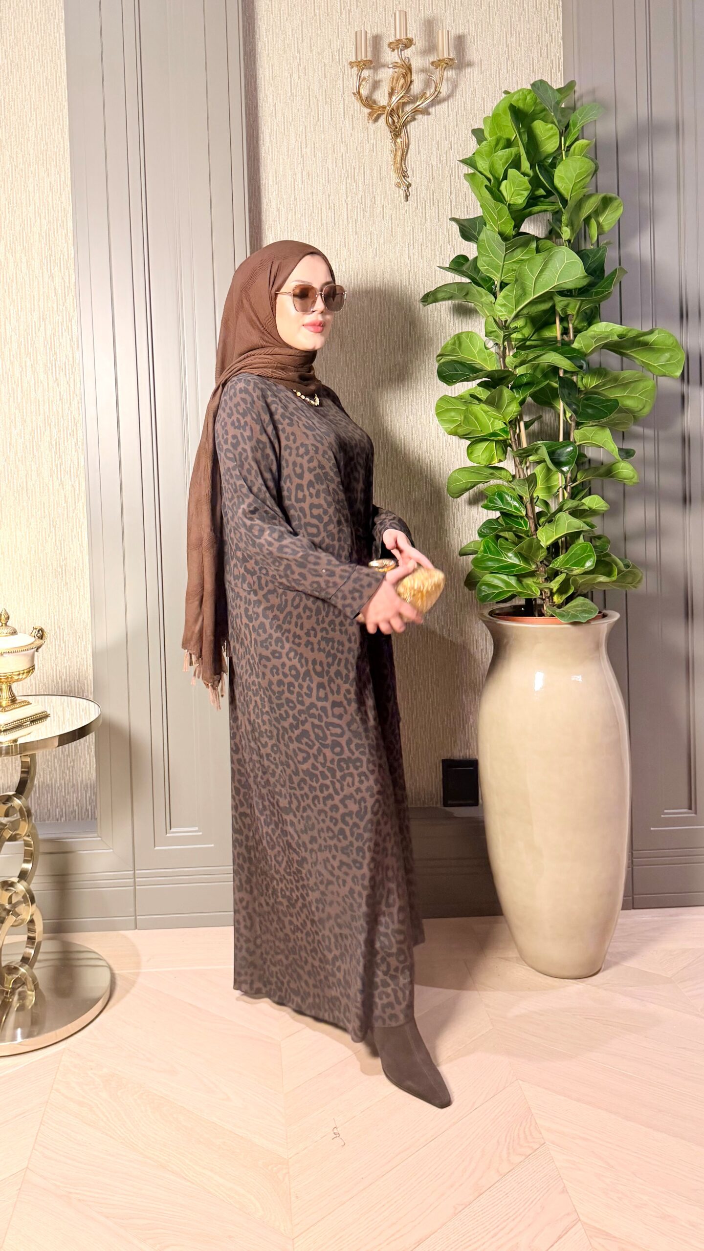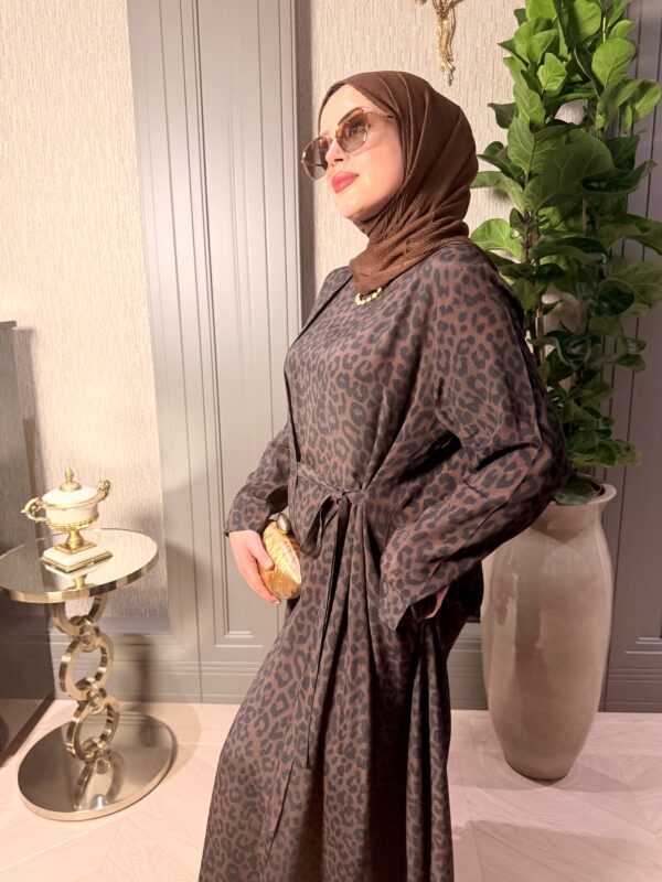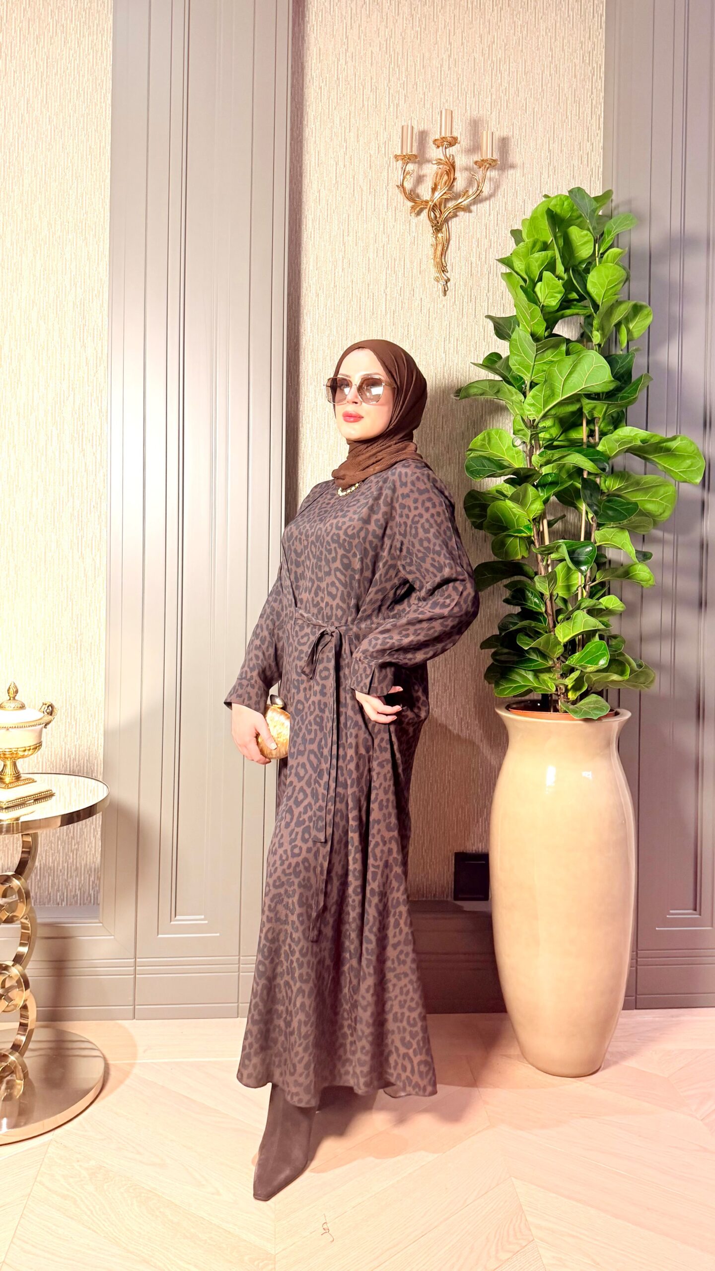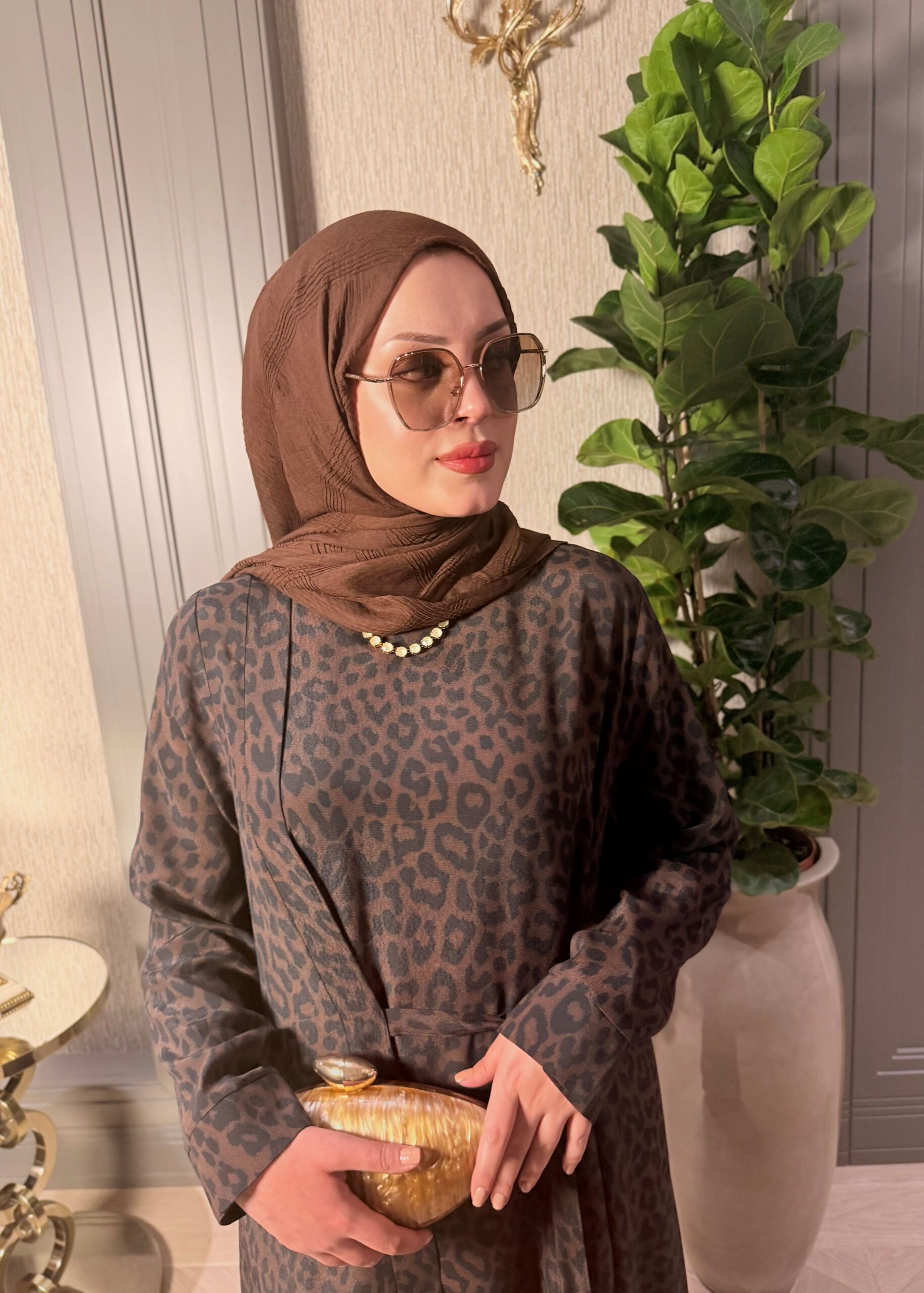 NOİ MAROKEN LEOPARLI ÖNDEN BAĞLAMALI ELBİSE