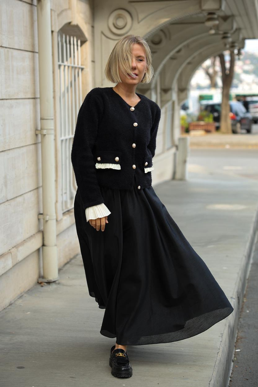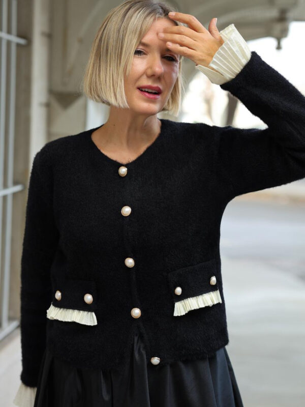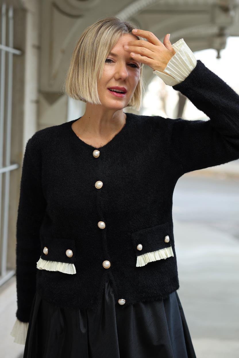 NOİ TRİKO ANGORA KOL. VE CEPLERİ PLİSELİ KISA HIRKA