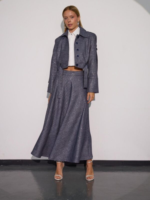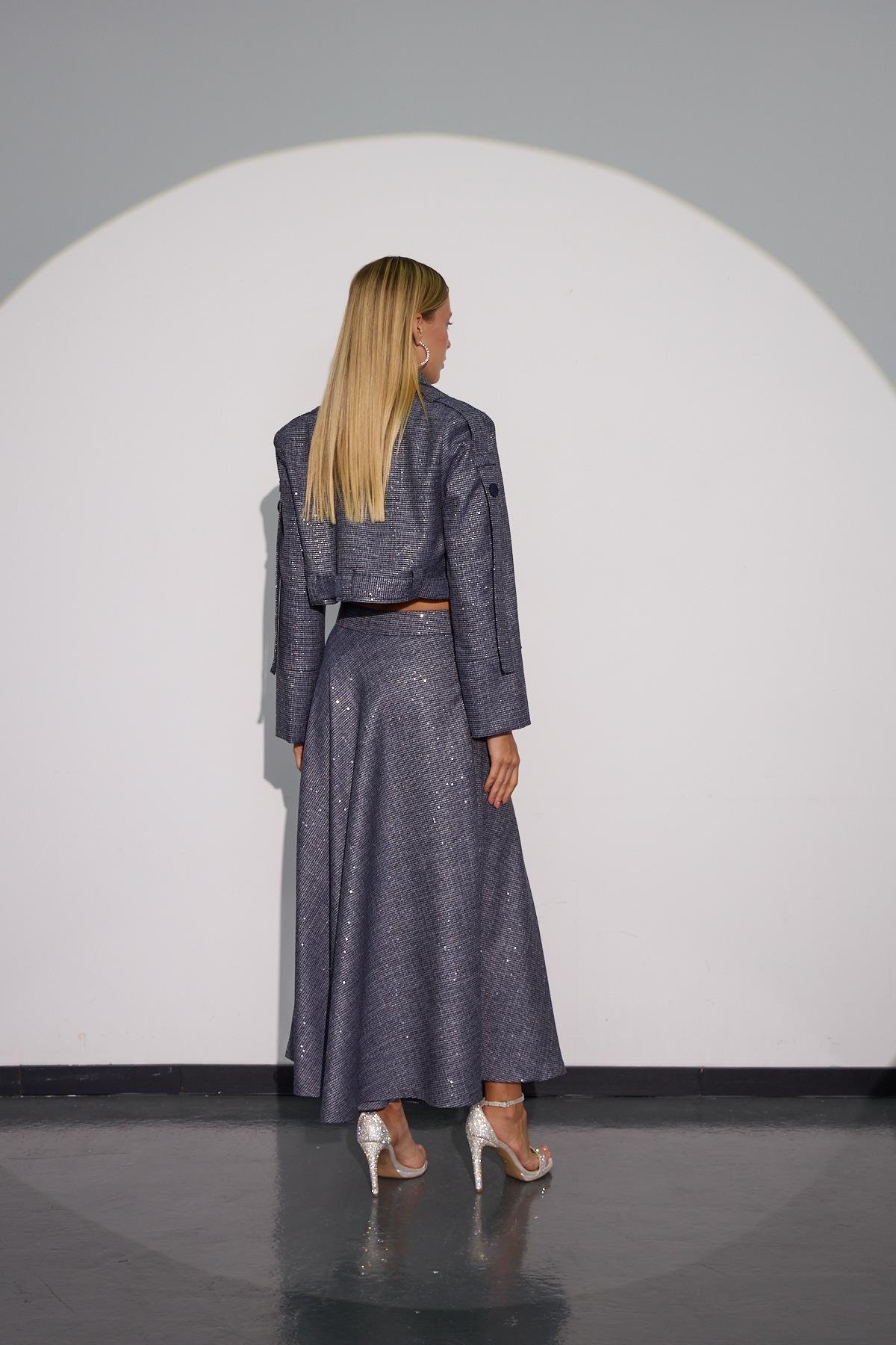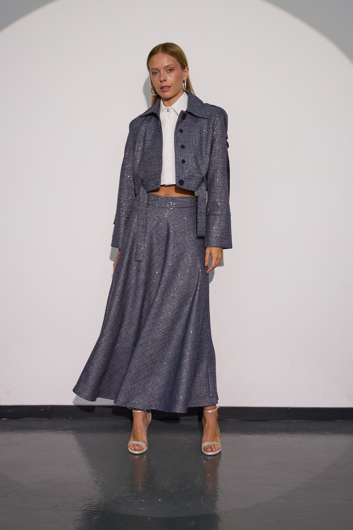 NOKİSTANBUL City Chic Payet Detaylı Işıltılı Kumaşlı Maxi Boy Etek