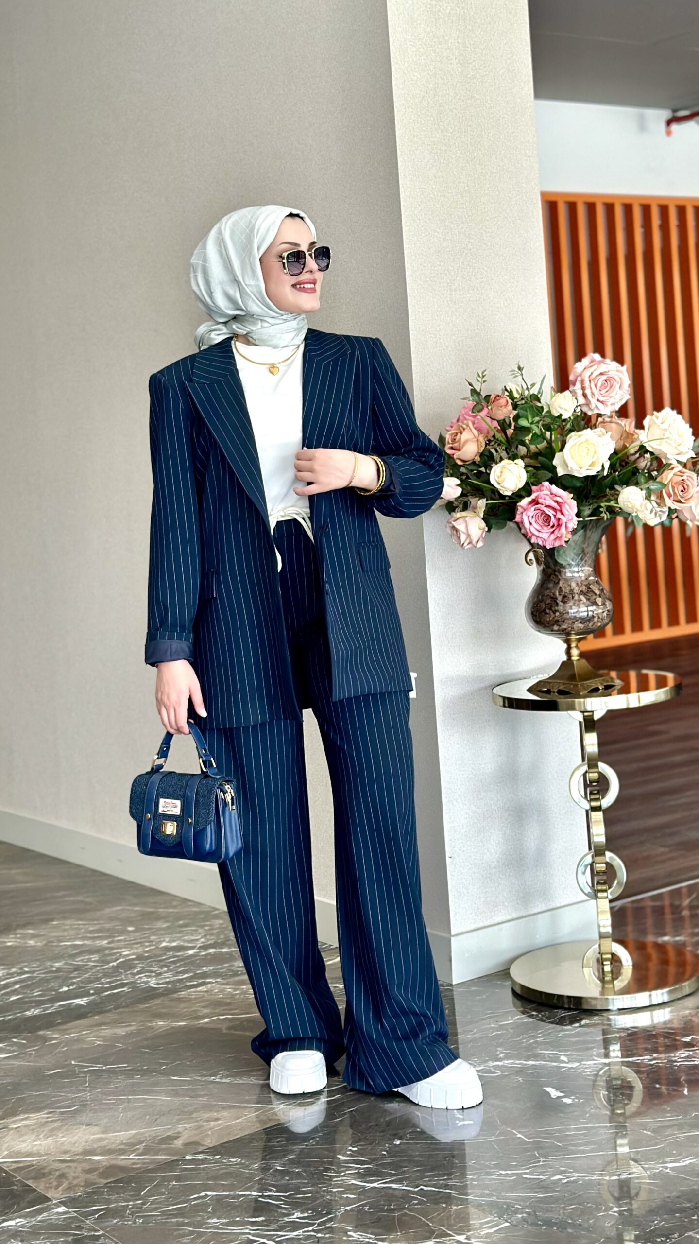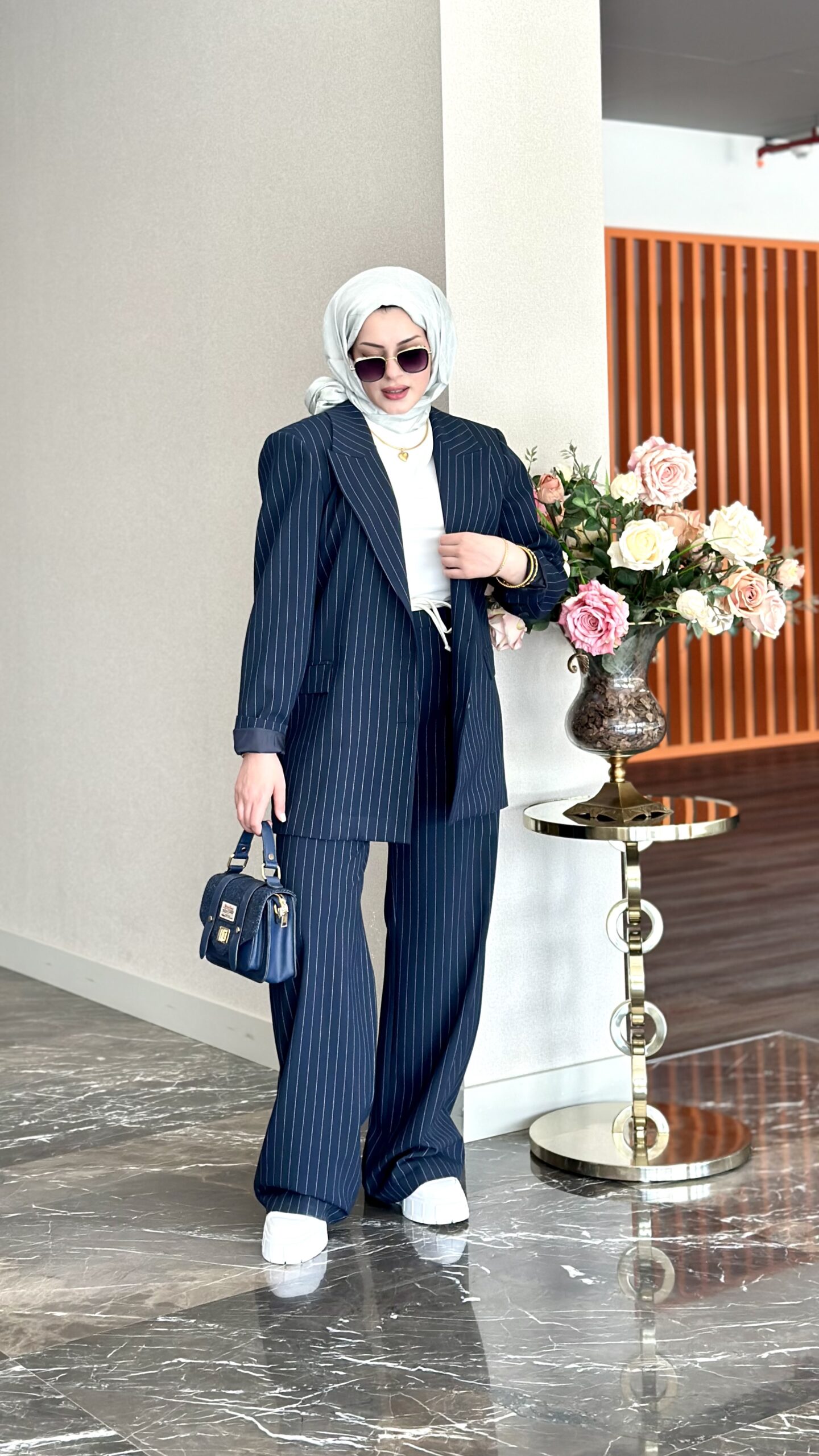 NOKİSTANBUL City Vibes Çizgili Oversize Blazer Ceket Lacivert