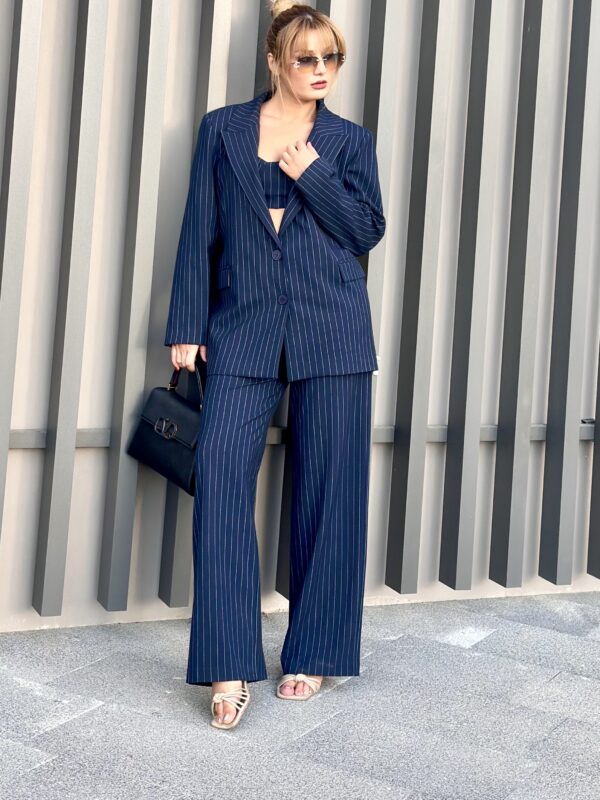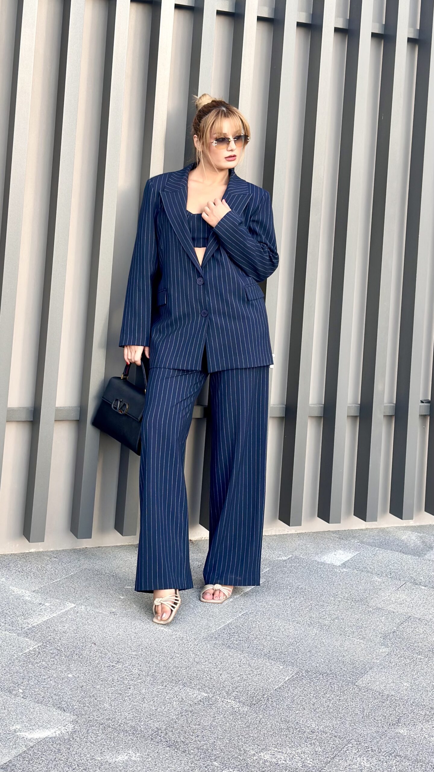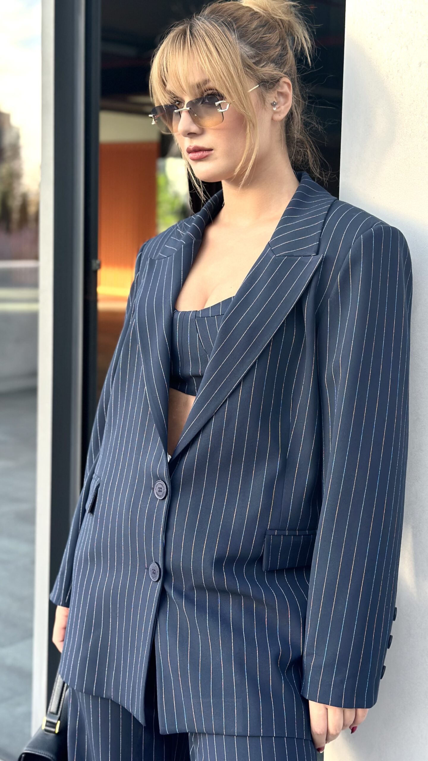City Vibes Çizgili Oversize Blazer Ceket Lacivert