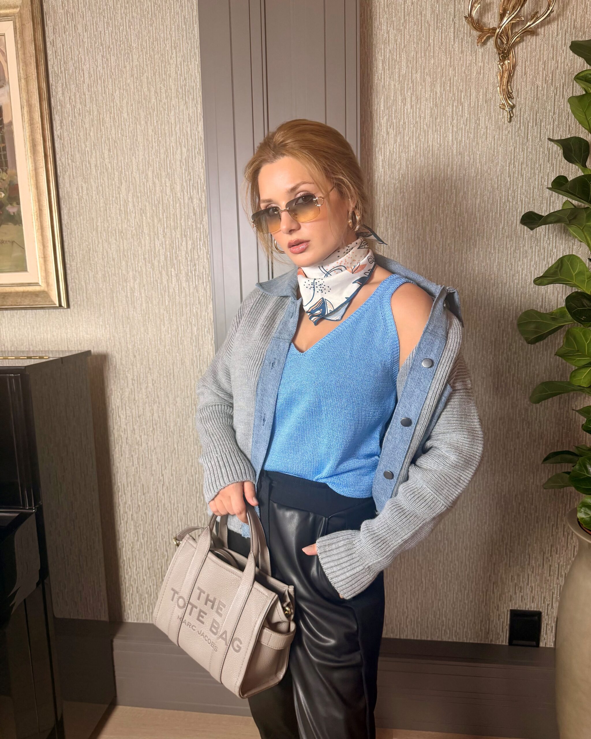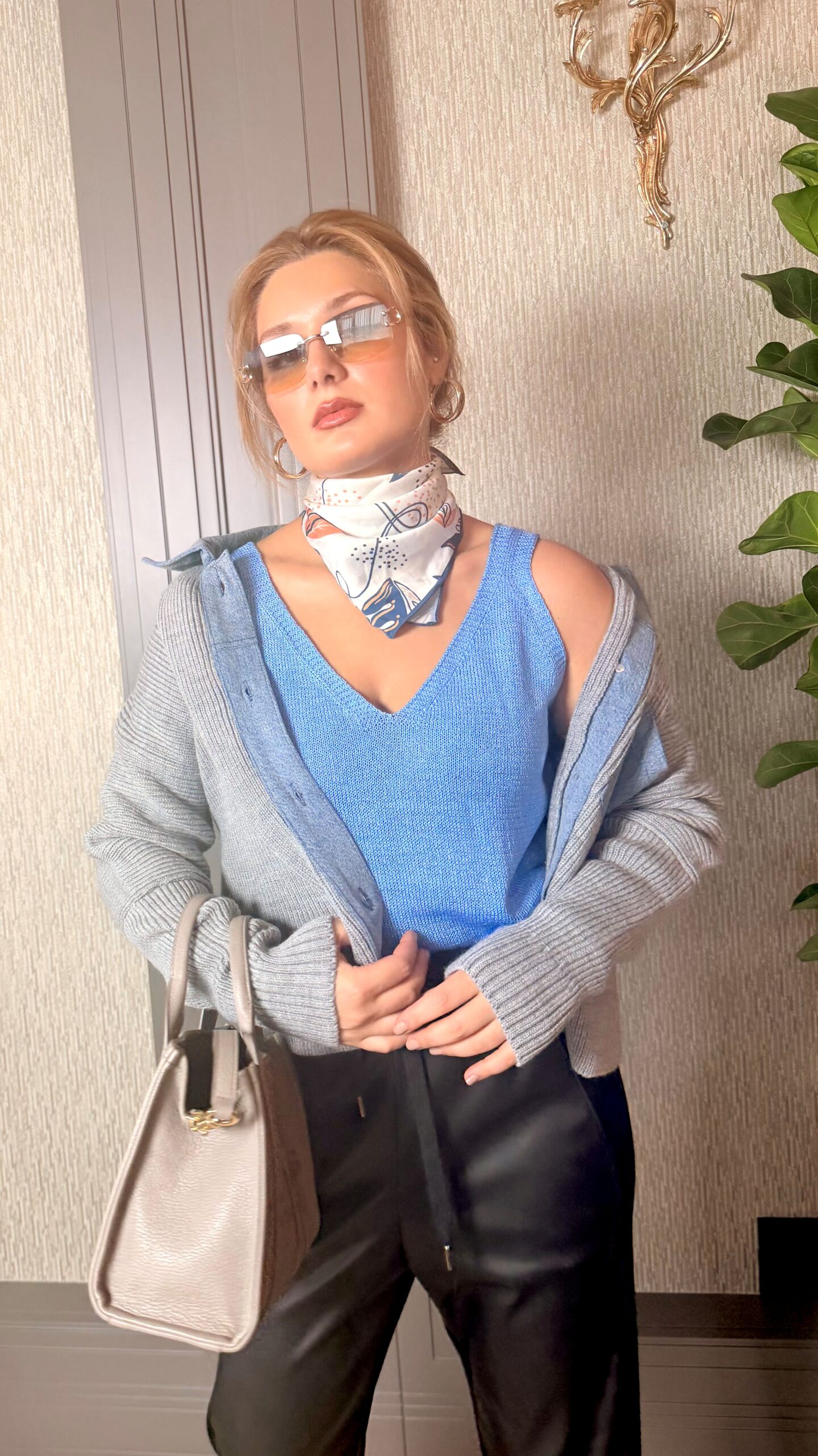 YAME MERSERIZE ASKILI BLUZ MAVİ